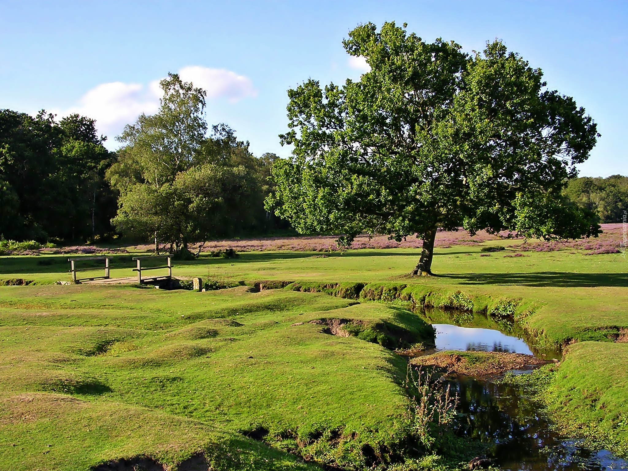Edytor tapety: Drzewa, Łąka, Strumyk, Mostek