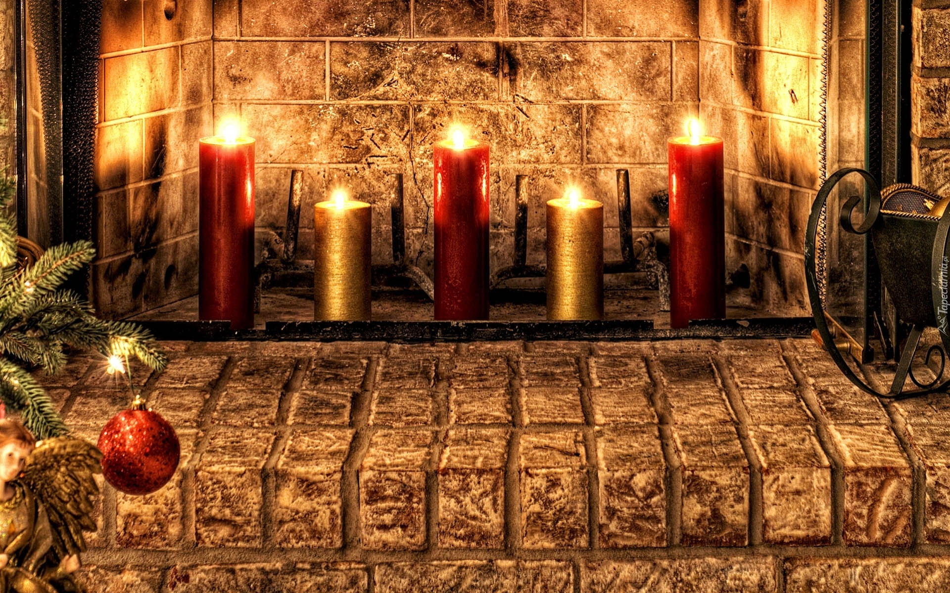 Edytor tapety: Świąteczna, Dekoracja, Świece, Kominek
