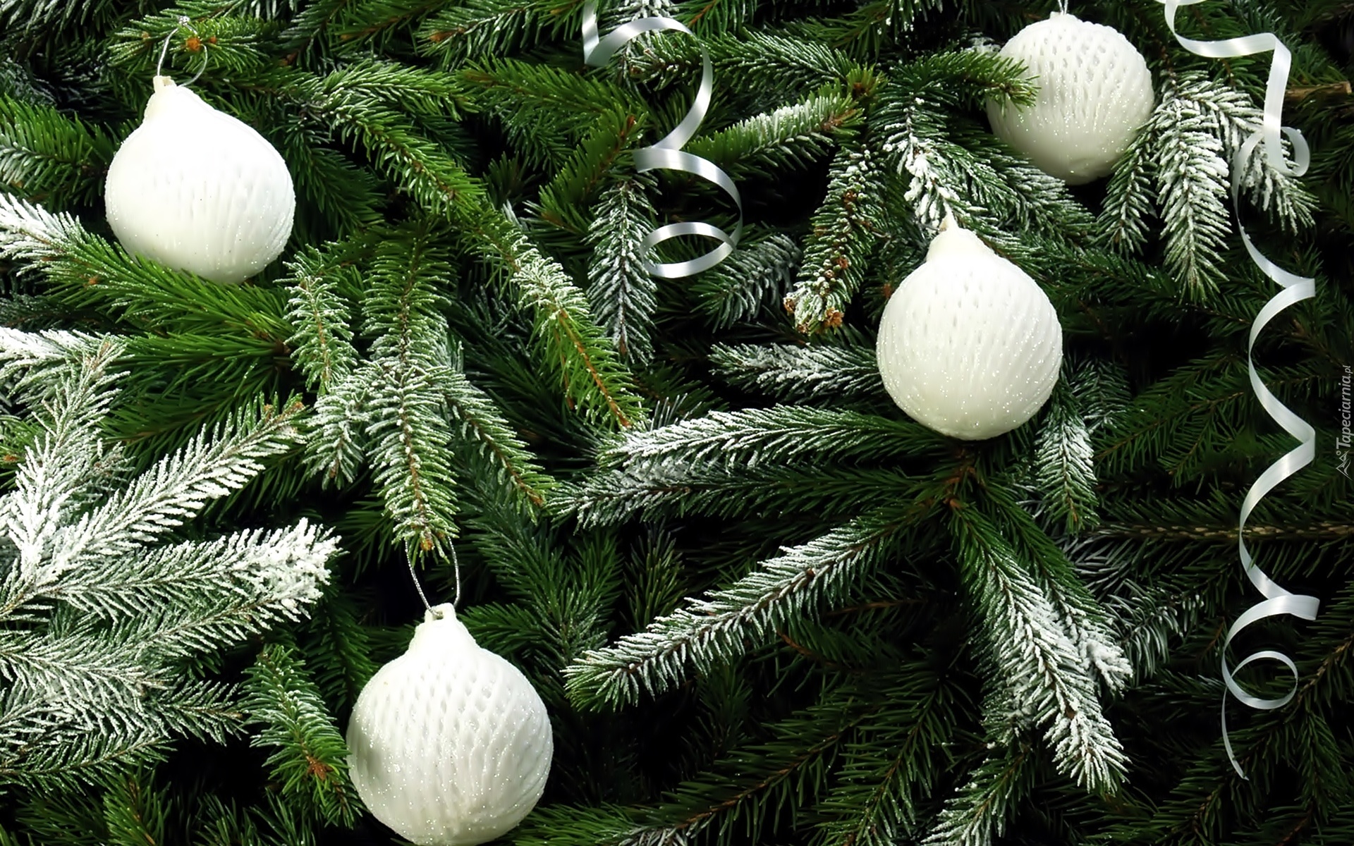 Edytor tapety: Bombki, Gałązki, Świerku, Śnieg