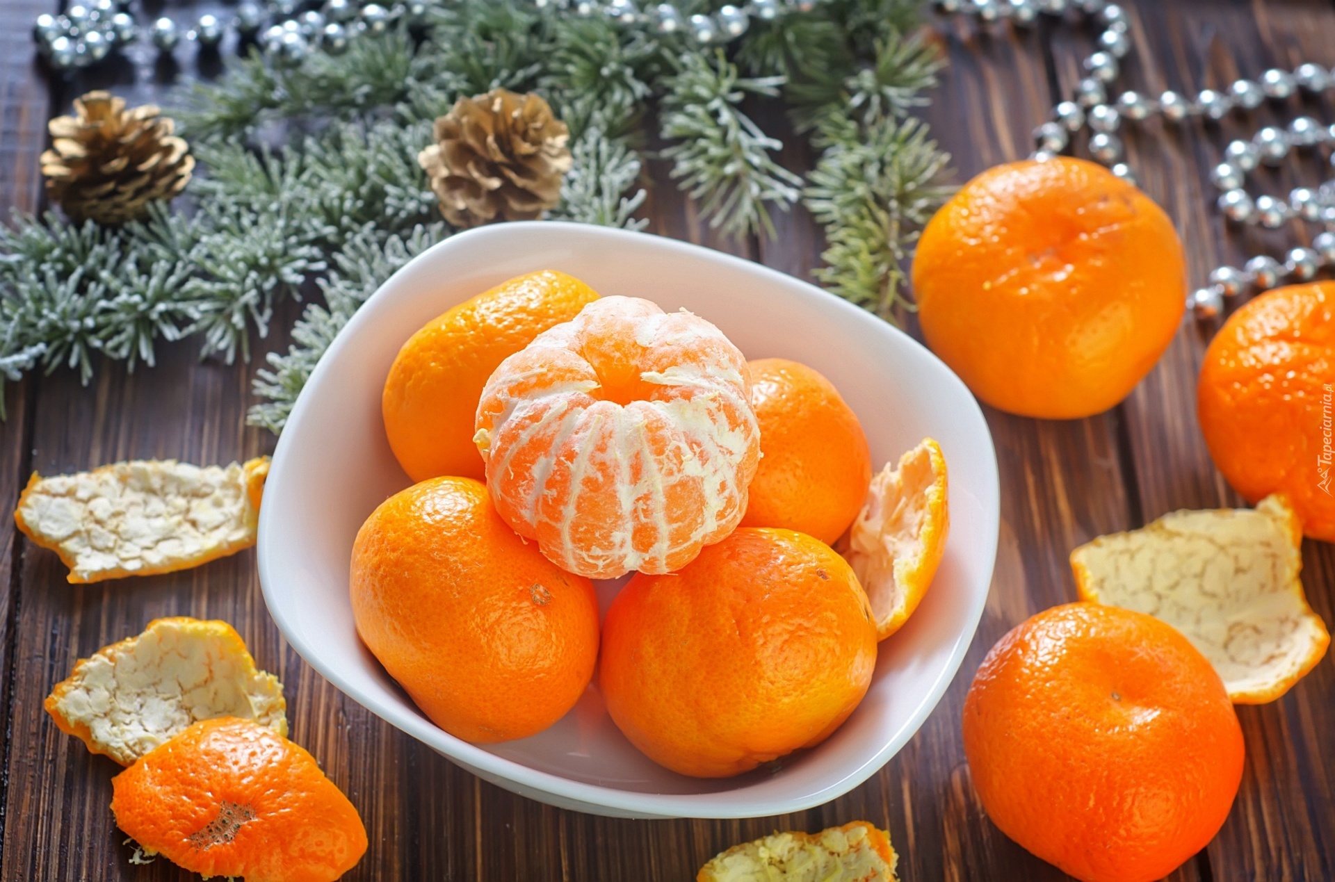 Edytor tapety: Mandarynki, Szyszki, Gałązki, Świerkowe, Koraliki