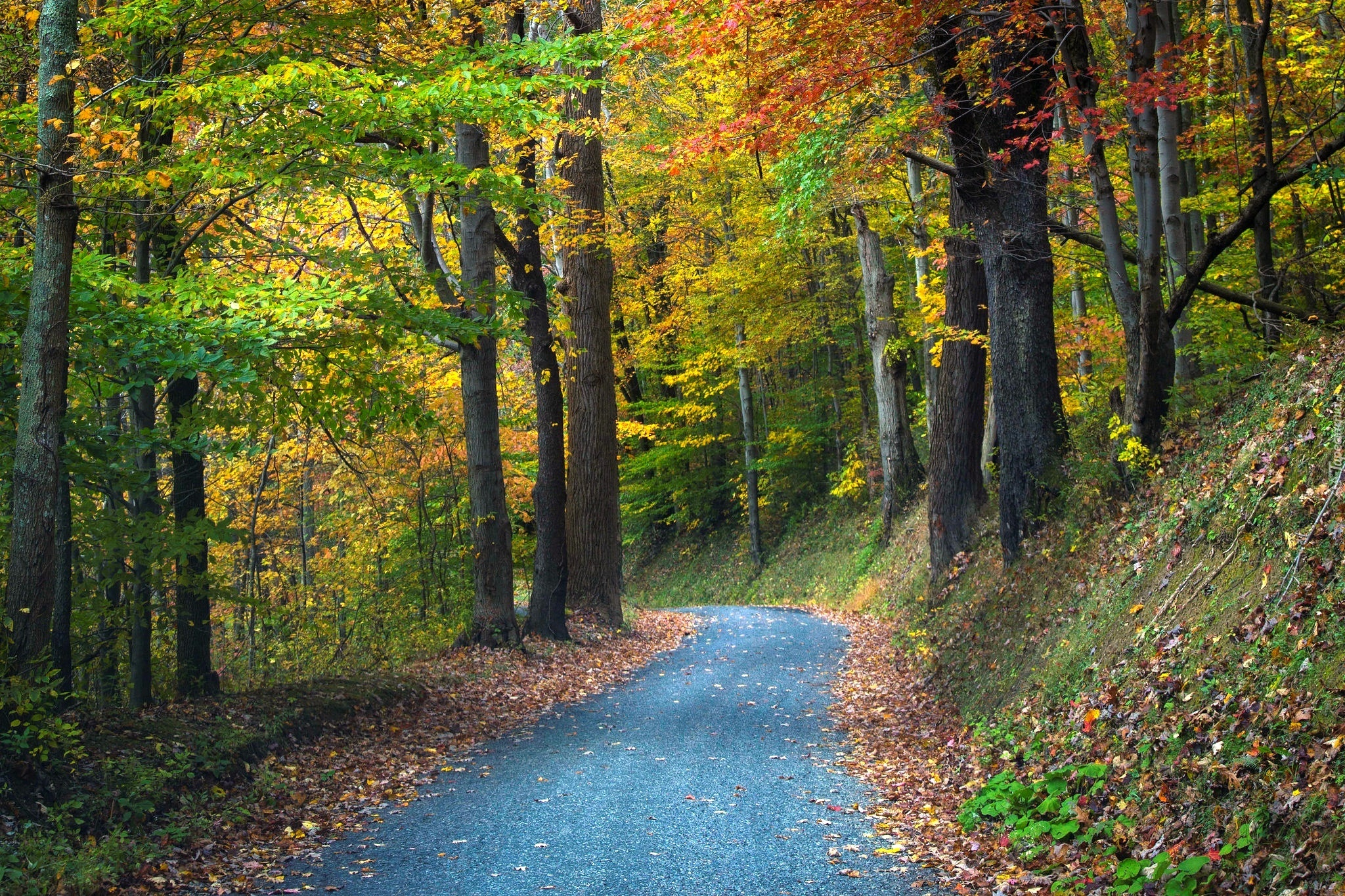 Edytor tapety: Las, Droga, Jesień