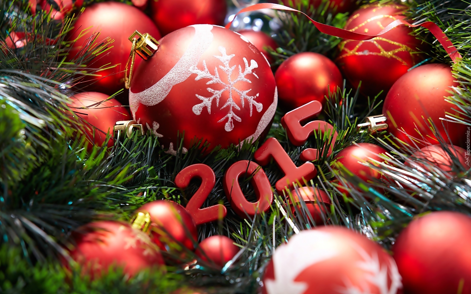 Edytor tapety: Nowy Rok, 2015, Bombki, Gałązki, Świerk
