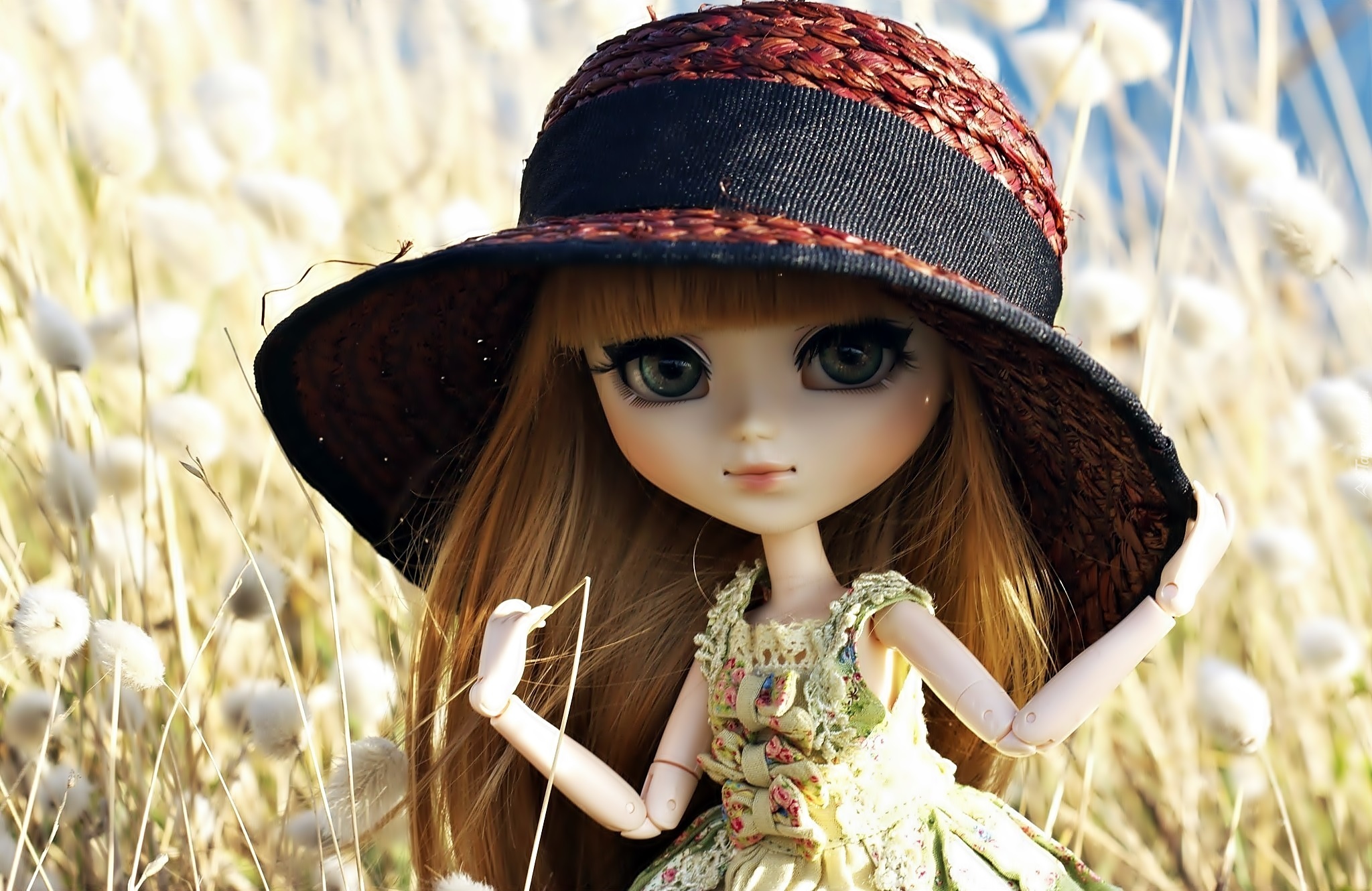 Edytor tapety: Lalka, Zabawka, Kapelusz, Łąka