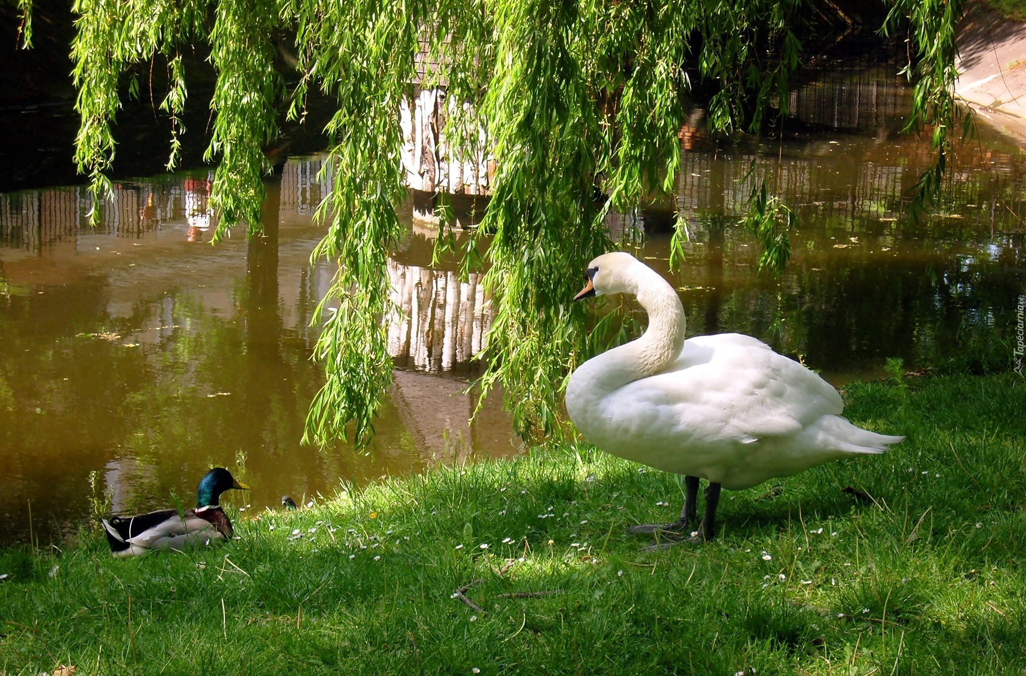 Edytor tapety: Łabędź, Kaczor, Jeziorko