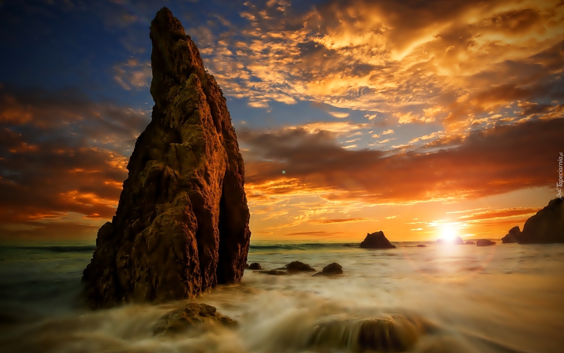 Edytor tapety: Chmury, Morze, Skały, Zachód Słońca