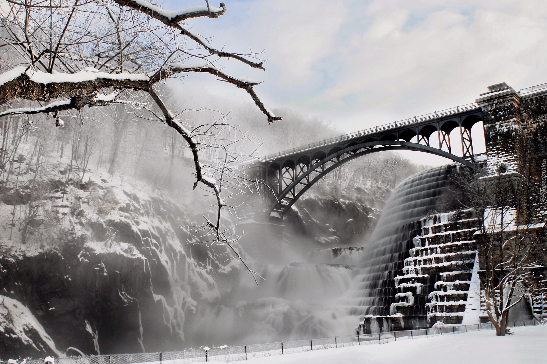 Edytor tapety: Wodospad, Most