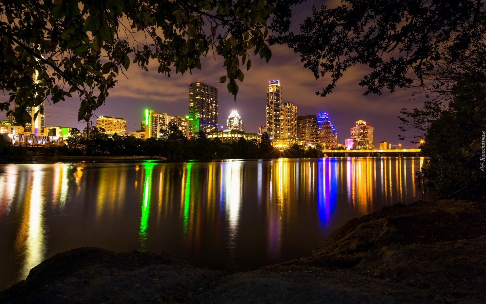 Edytor tapety: Miasto, Nocą, Światła, Rzeka, Odbicie