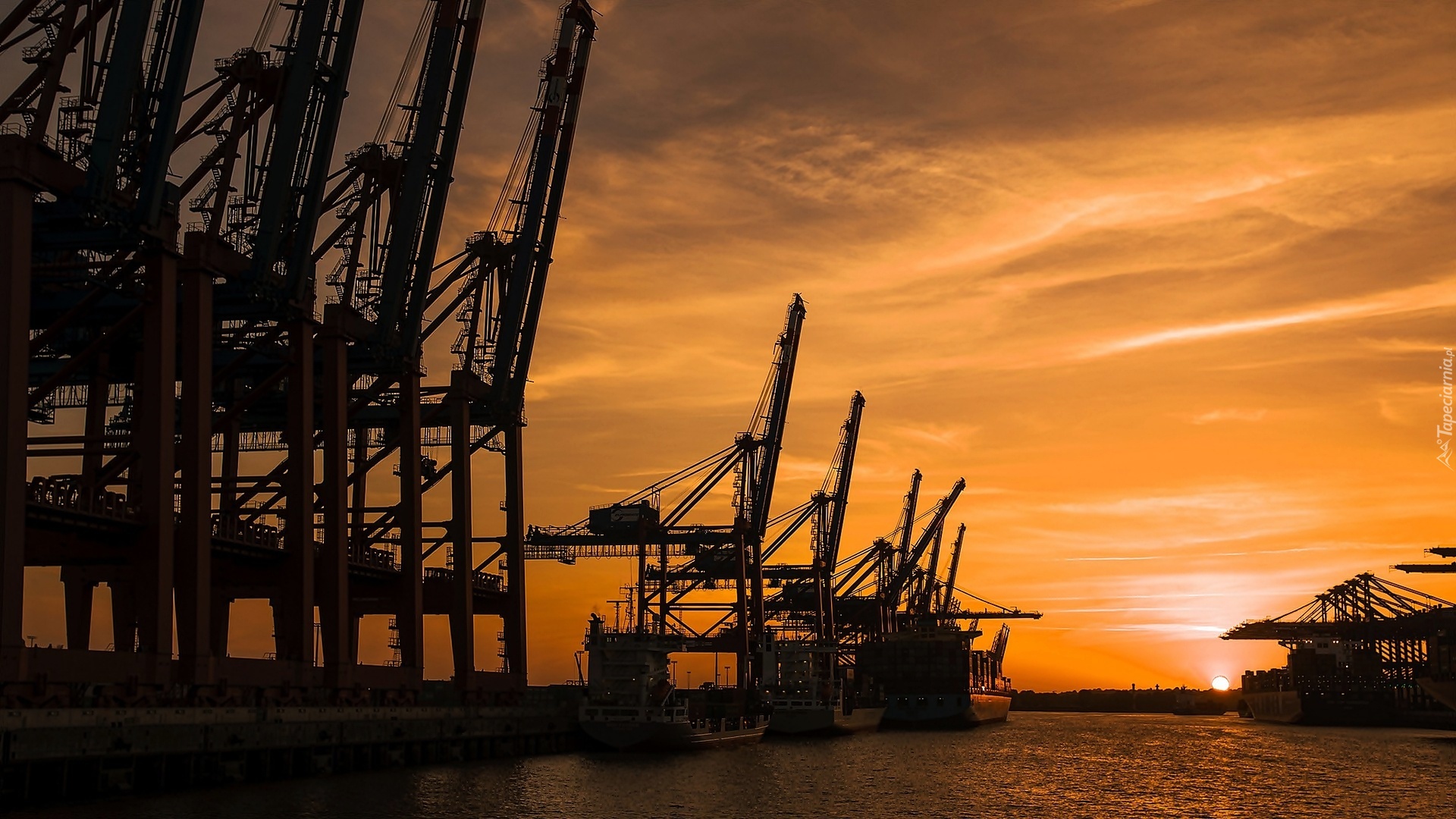 Edytor tapety: Port, Dźwigi, Zachód, Słońca