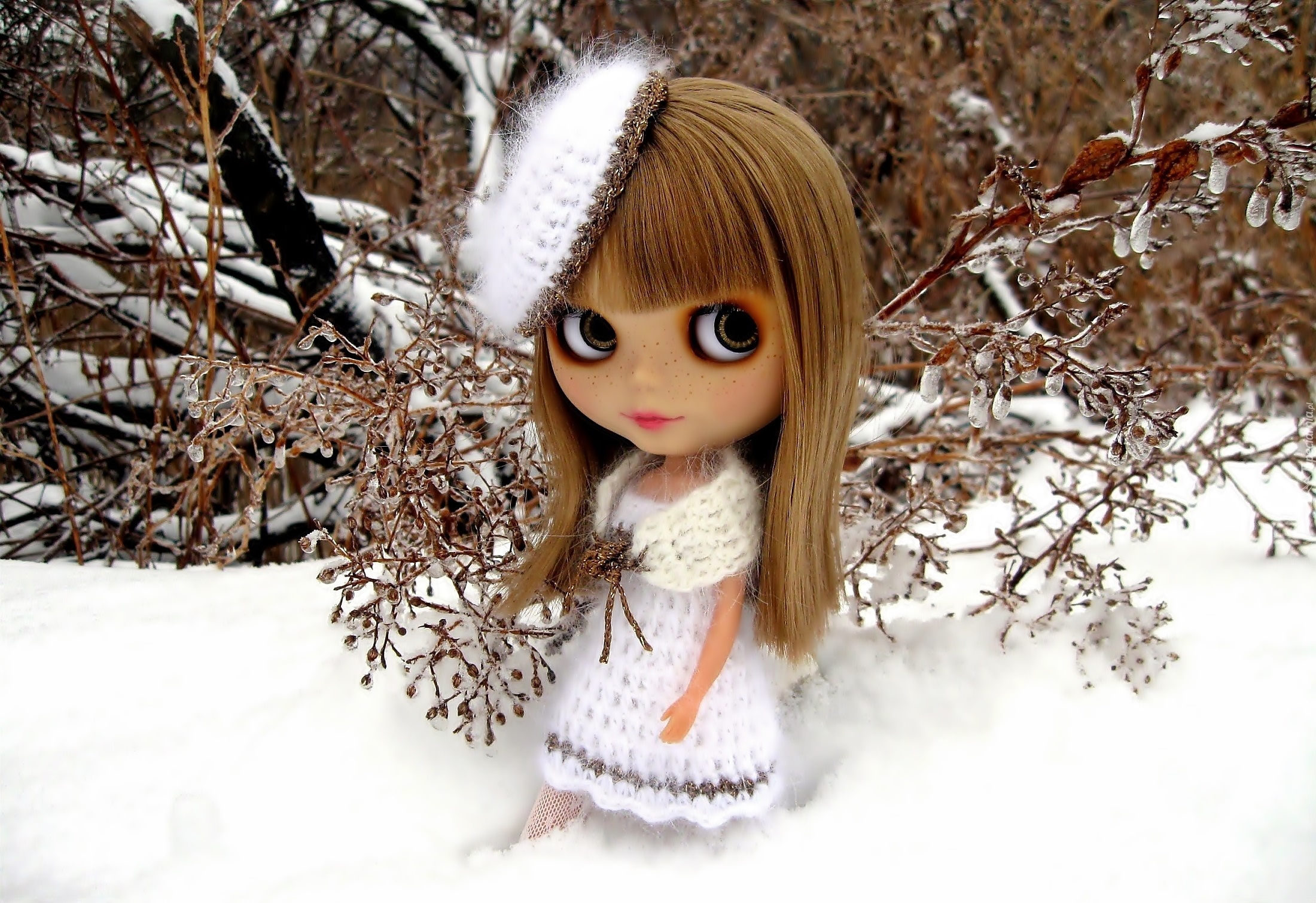 Edytor tapety: Lalka, Zima, Śnieg, Ubranko, Dzianina