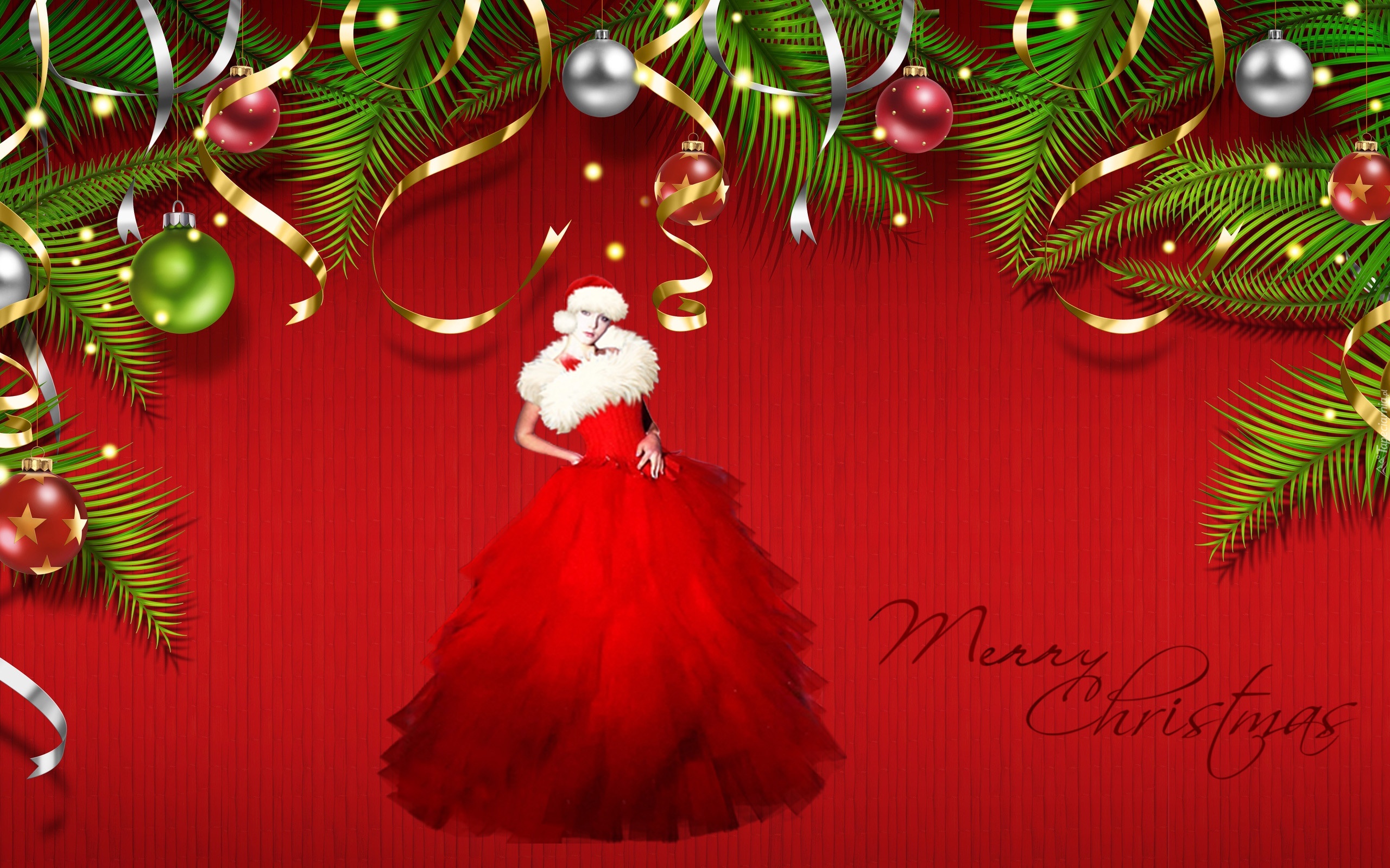 Edytor tapety: Boże Narodzenie, Kobieta, Bombki, Ozdoby Świąteczne