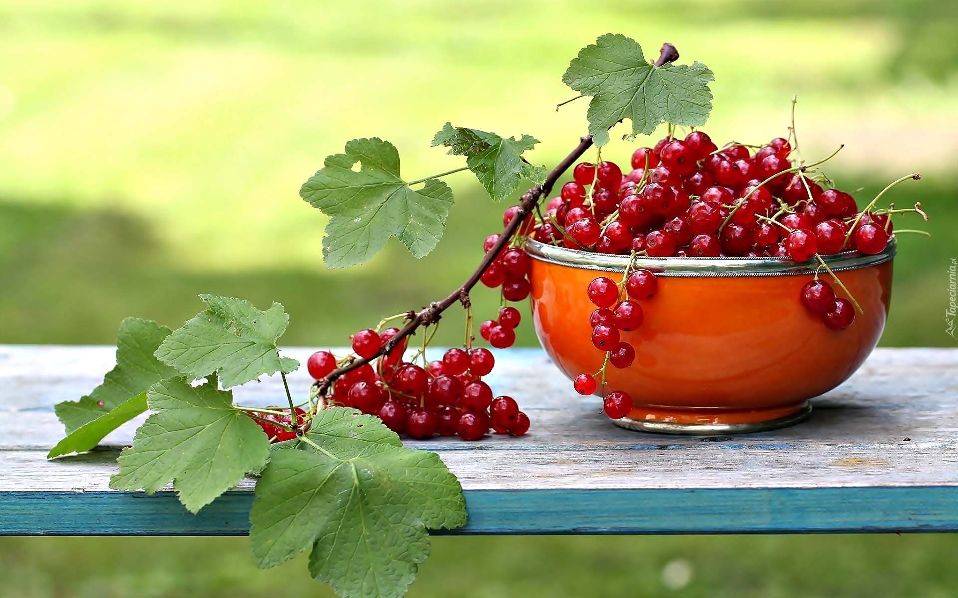 Edytor tapety: Czerwona, Porzeczka, Listki, Miska