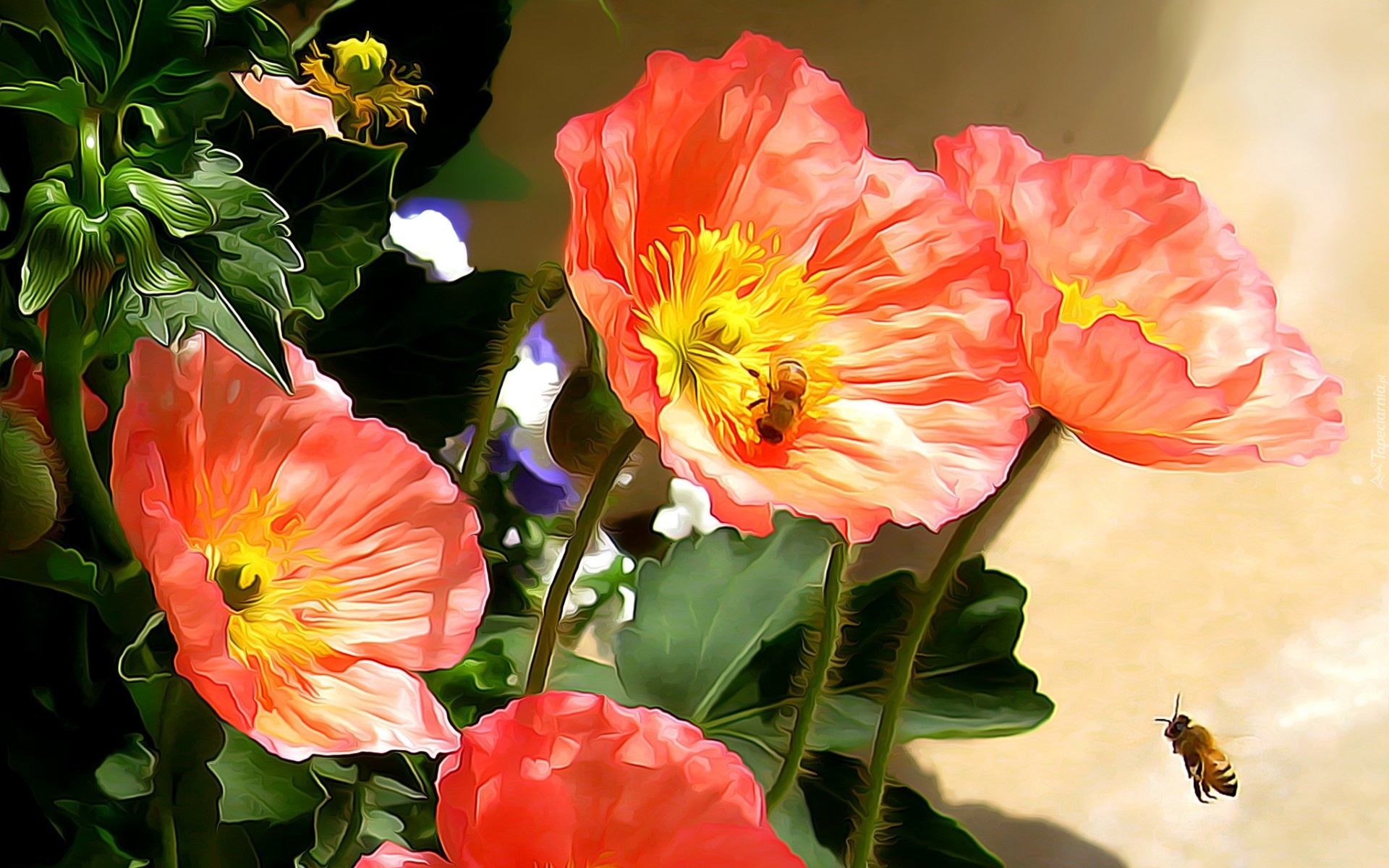 Edytor tapety: Kwiaty, Maki, Pszczoły, 2D