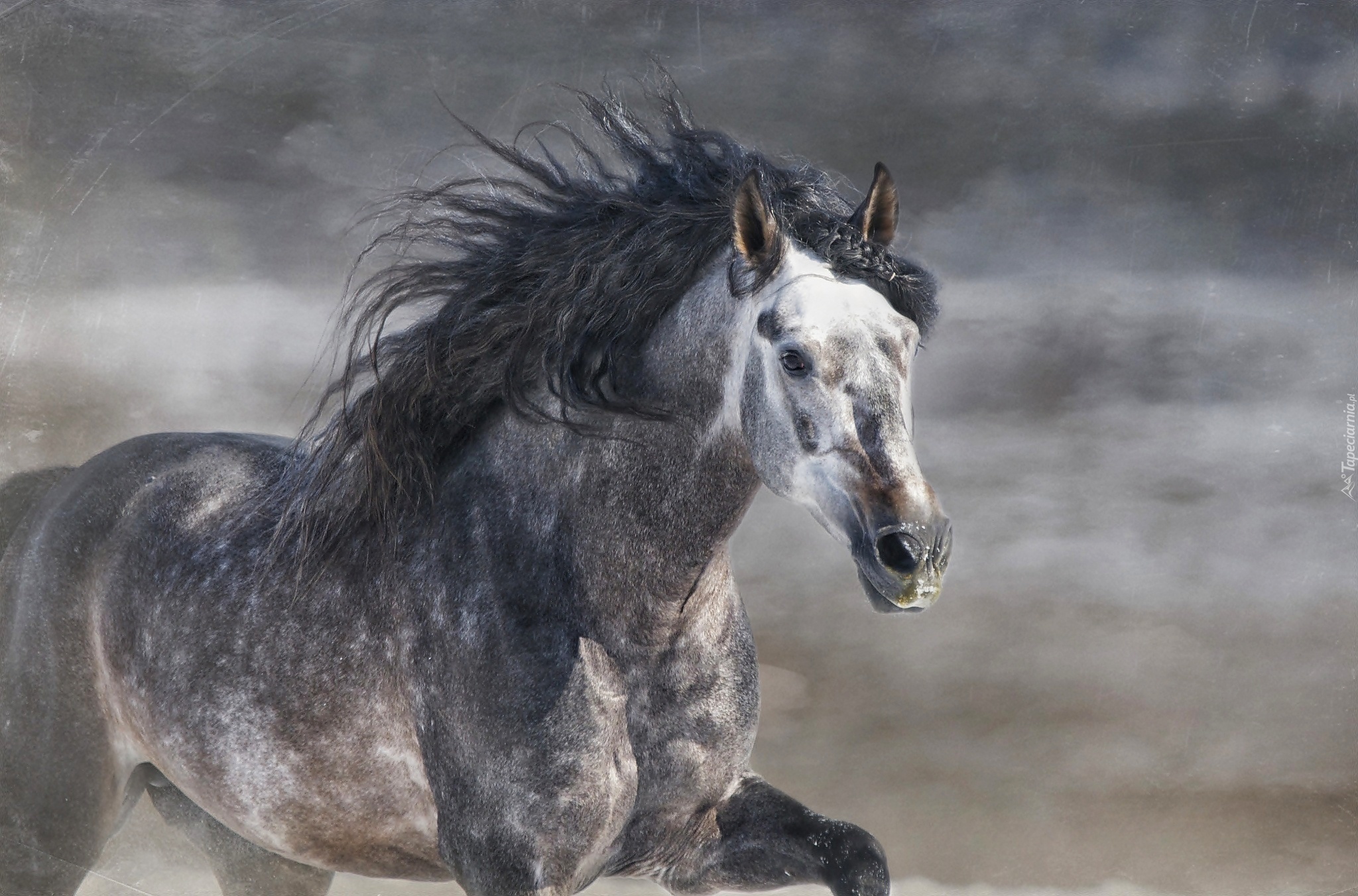 Edytor tapety: Siwy, Koń, Grzywa