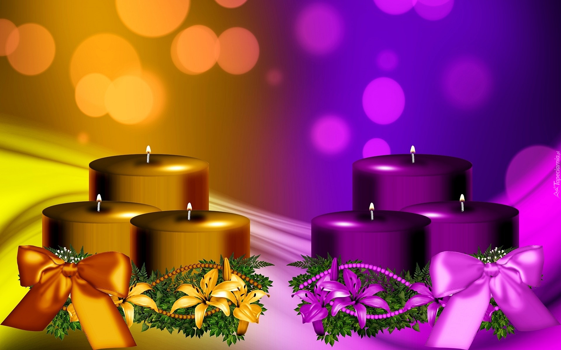 Edytor tapety: Dekoracja, Świąteczna, Złote, Fioletowe, Świeczki