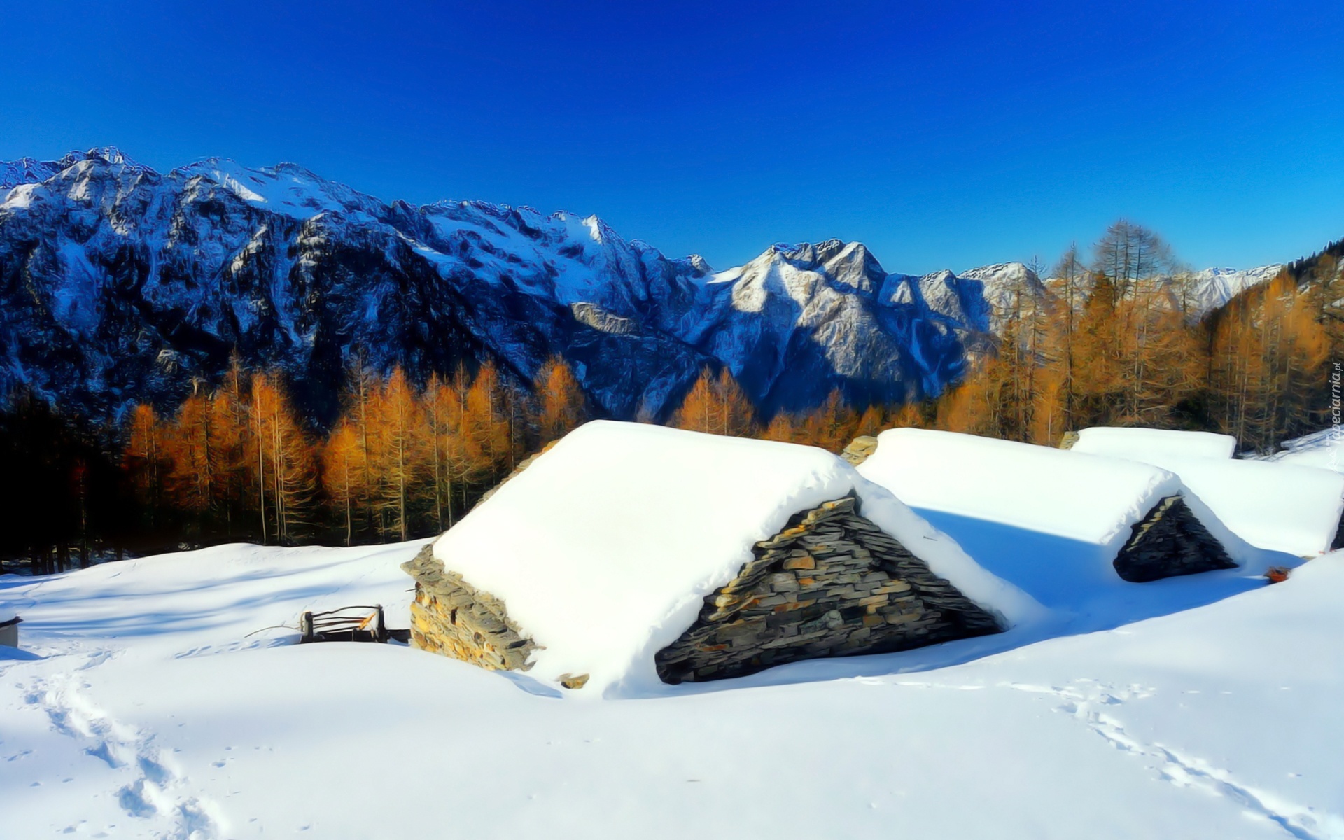 Edytor tapety: Zima, Góry, Ośnieżone, Dachy