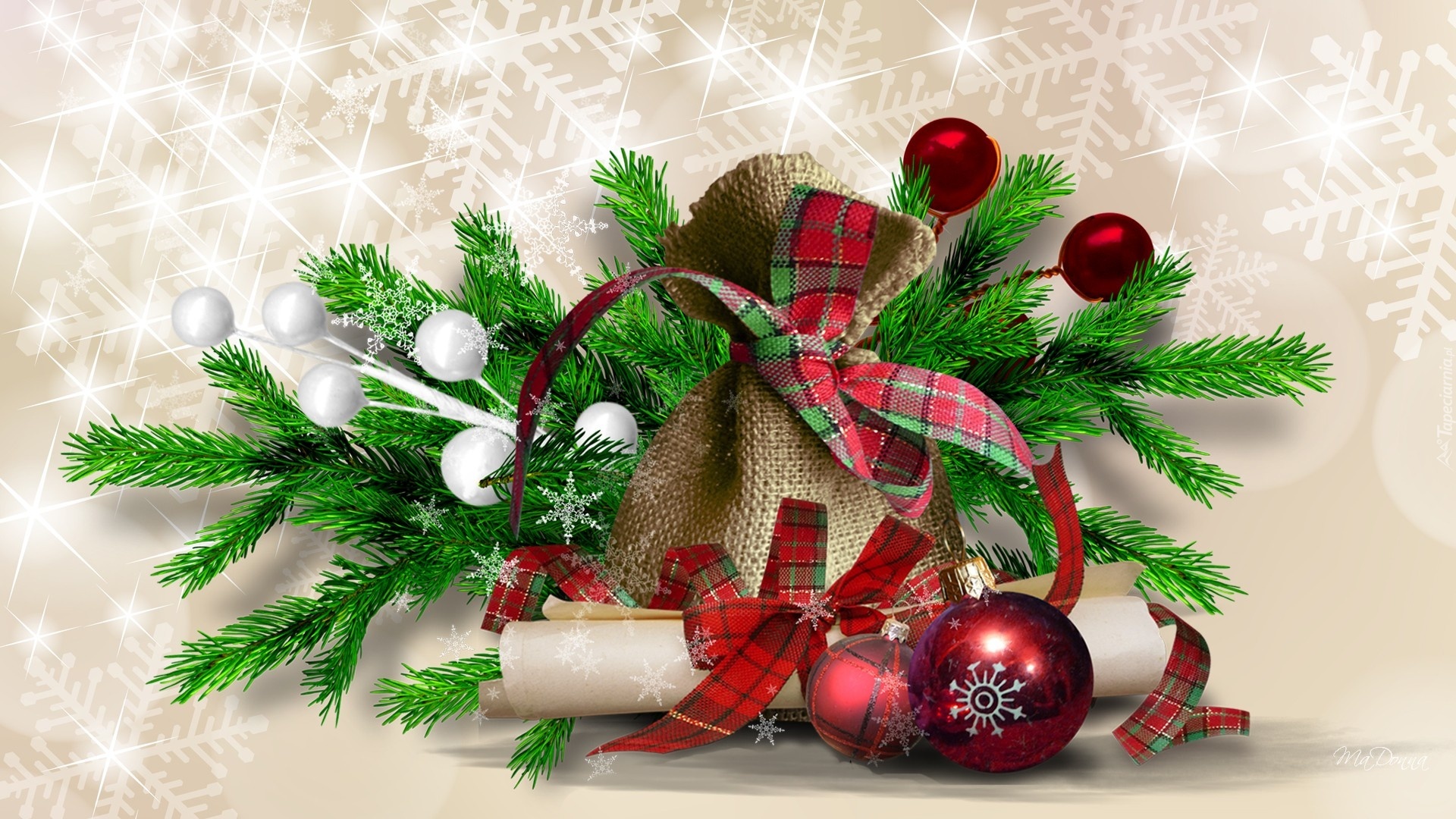 Edytor tapety: Bombki, Gałązka, Wstążka