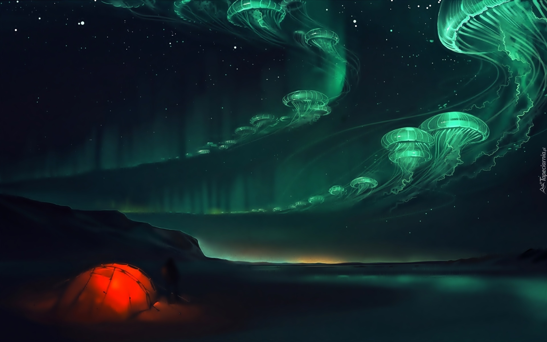 Edytor tapety: Fantasy, Noc, Zorza Polarna