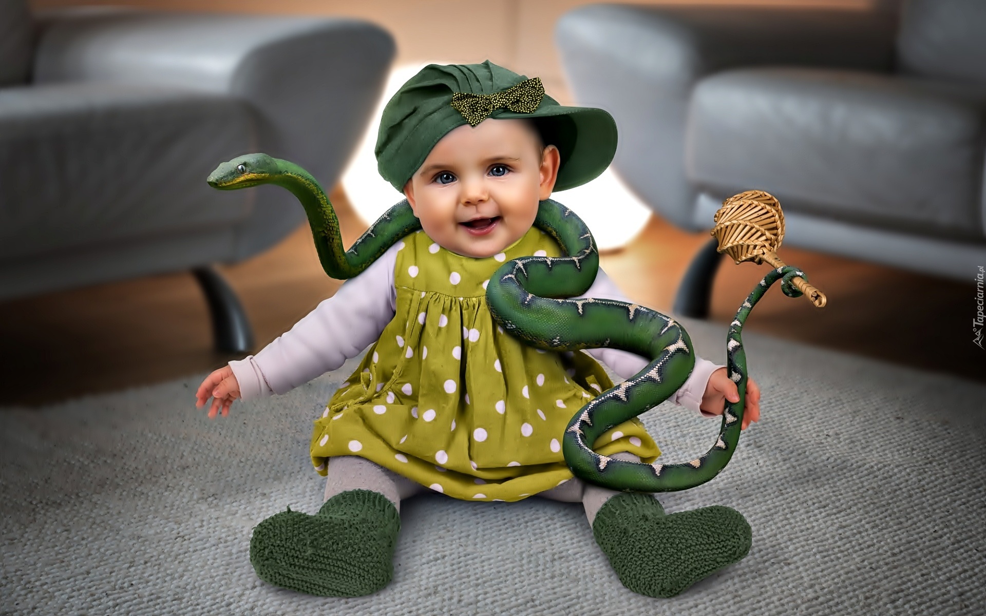 Edytor tapety: Wesoła, Dziewczynka, Zabawka, Żmija