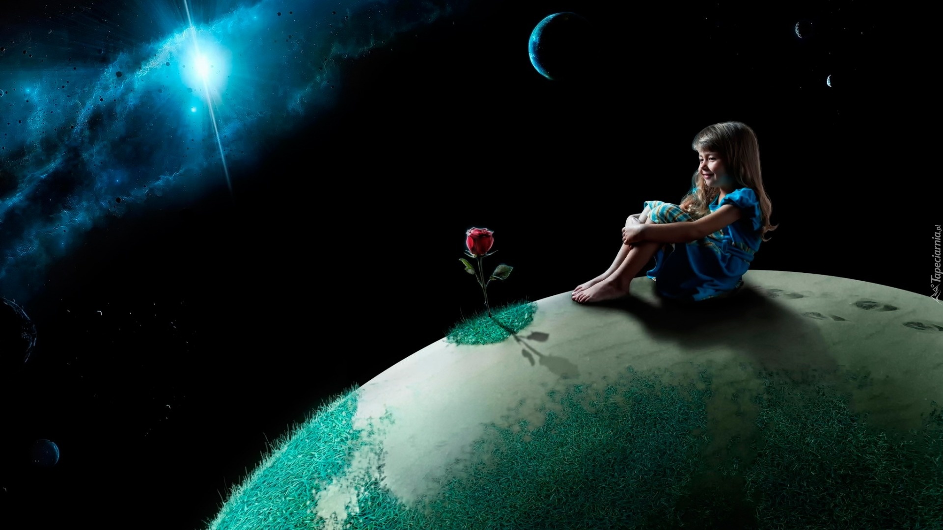 Edytor tapety: Fantasy, Kosmos, Planety, Dziewczynka, Róża