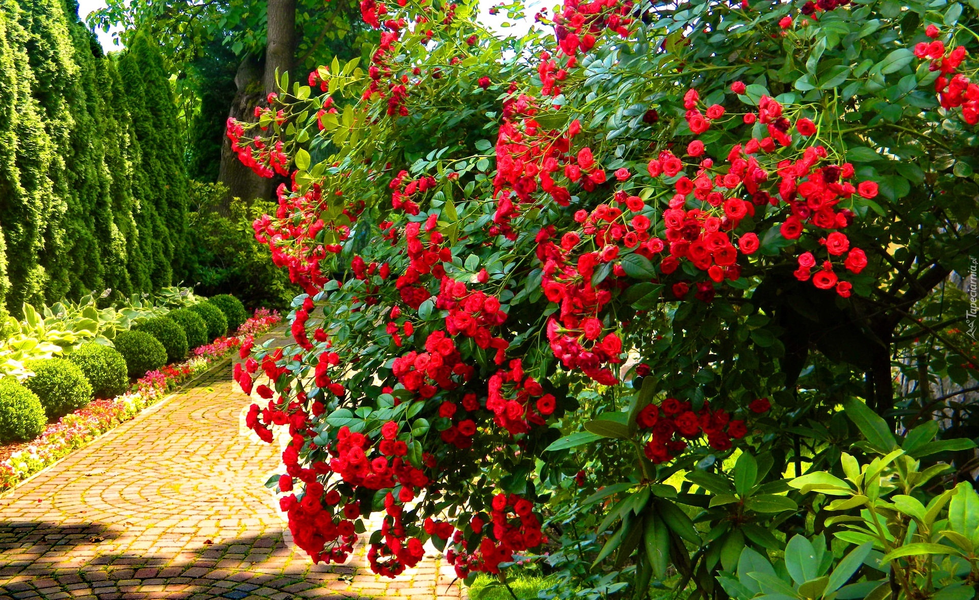 Edytor tapety: Ogród, Alejka, Kwitnące, Drzewo