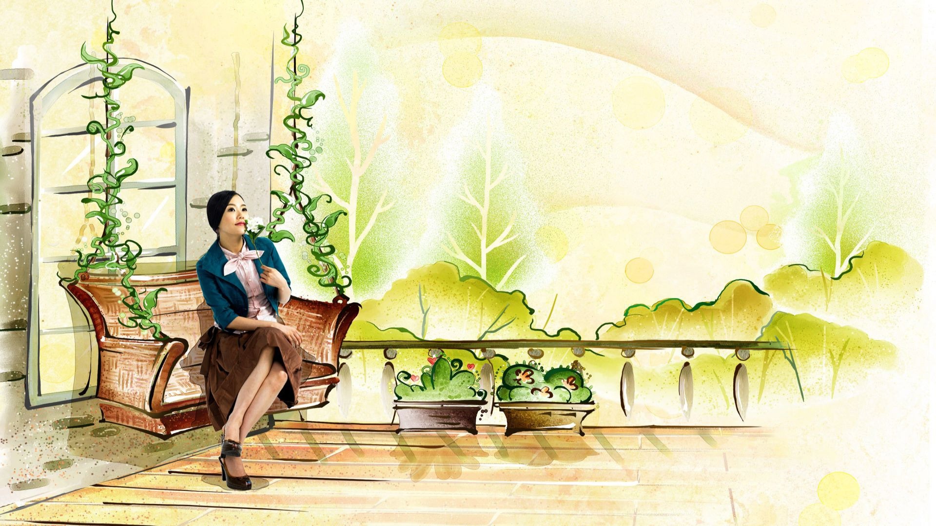 Edytor tapety: Grafika, Dziewczyna, Fotel, Taras