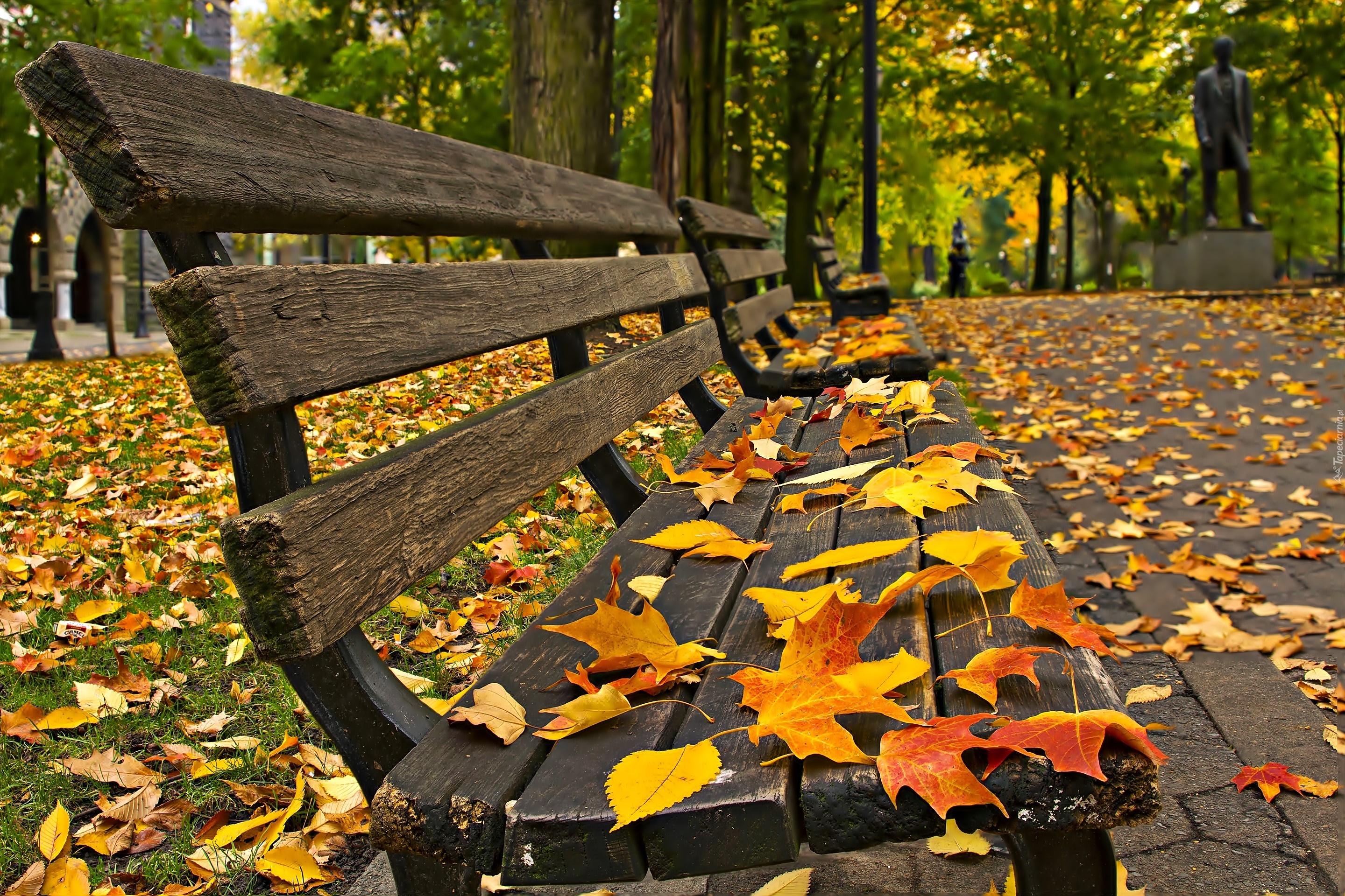 Edytor tapety: Jesień, Park, Ławeczki, Opadłe, Liście