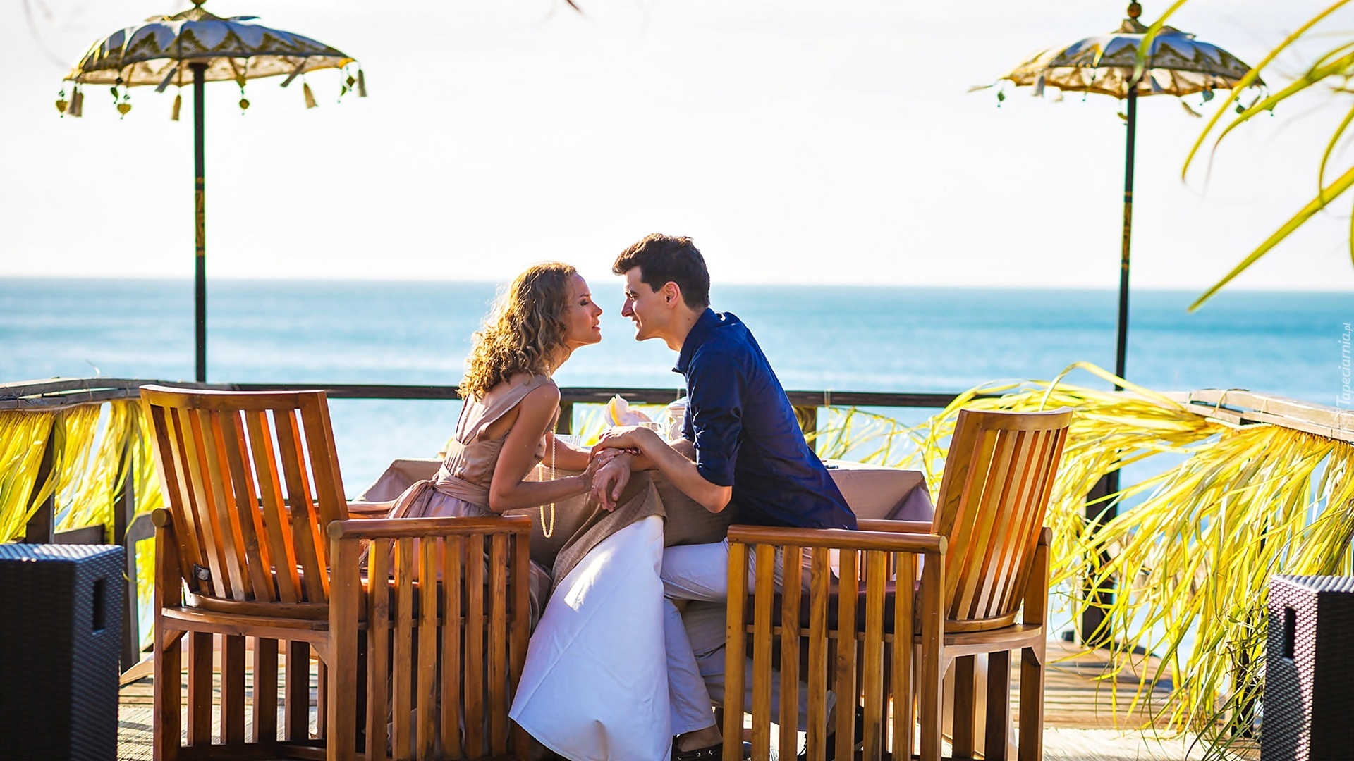 Edytor tapety: Zakochani, Stolik, Krzesła, Morze