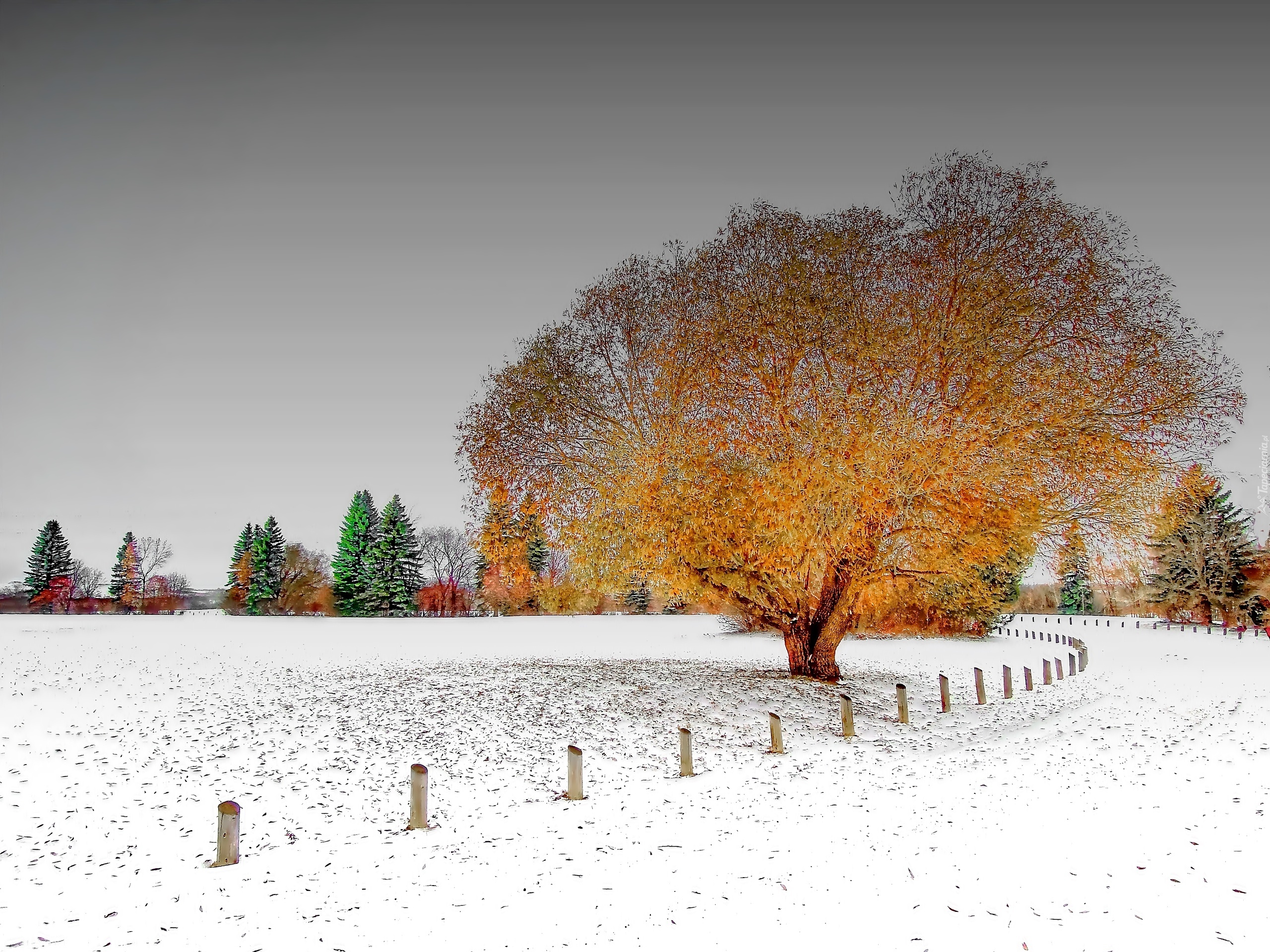 Edytor tapety: Zima, Ośnieżona, Droga, Drzewo