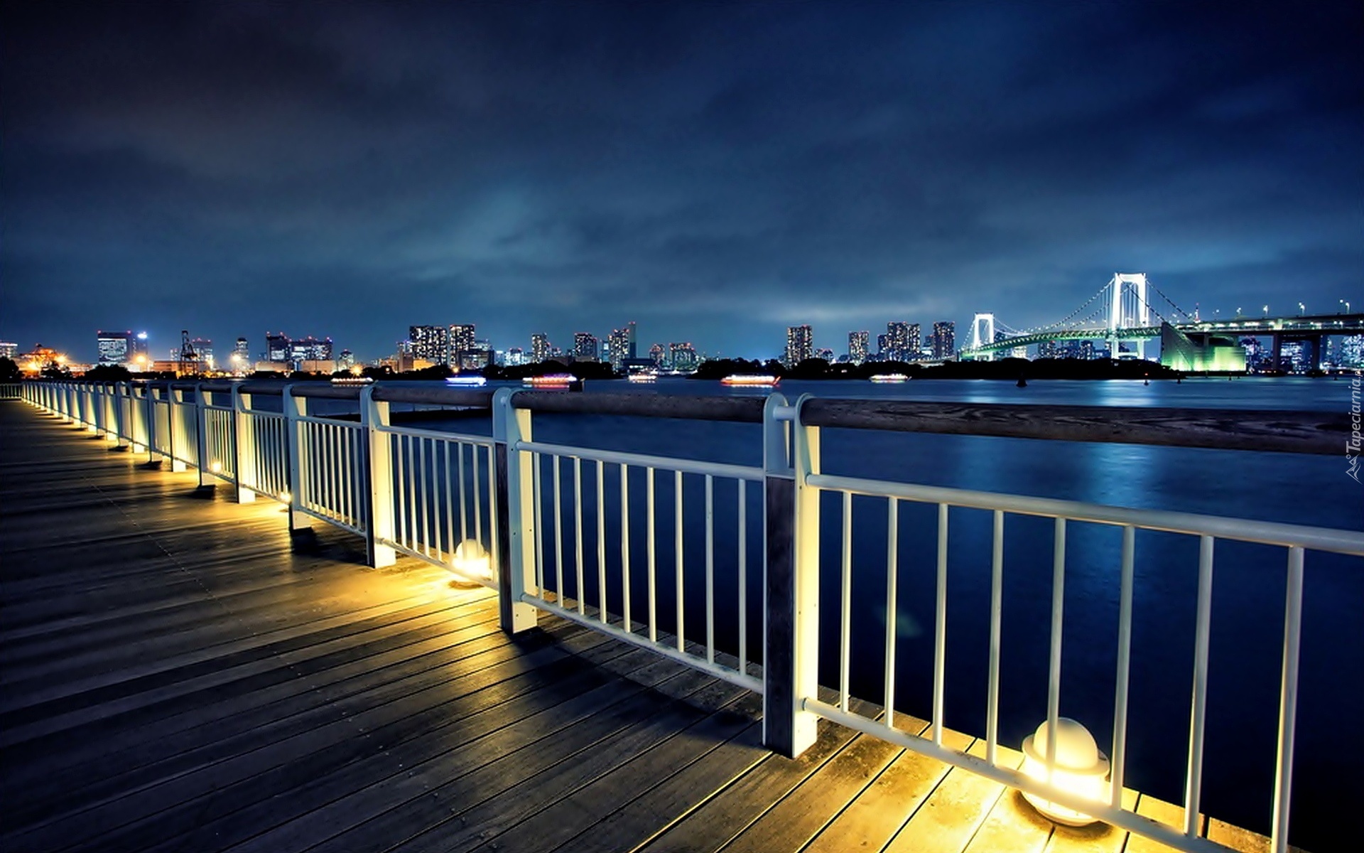 Edytor tapety: Miasto, Noc, Oświetlony, Most