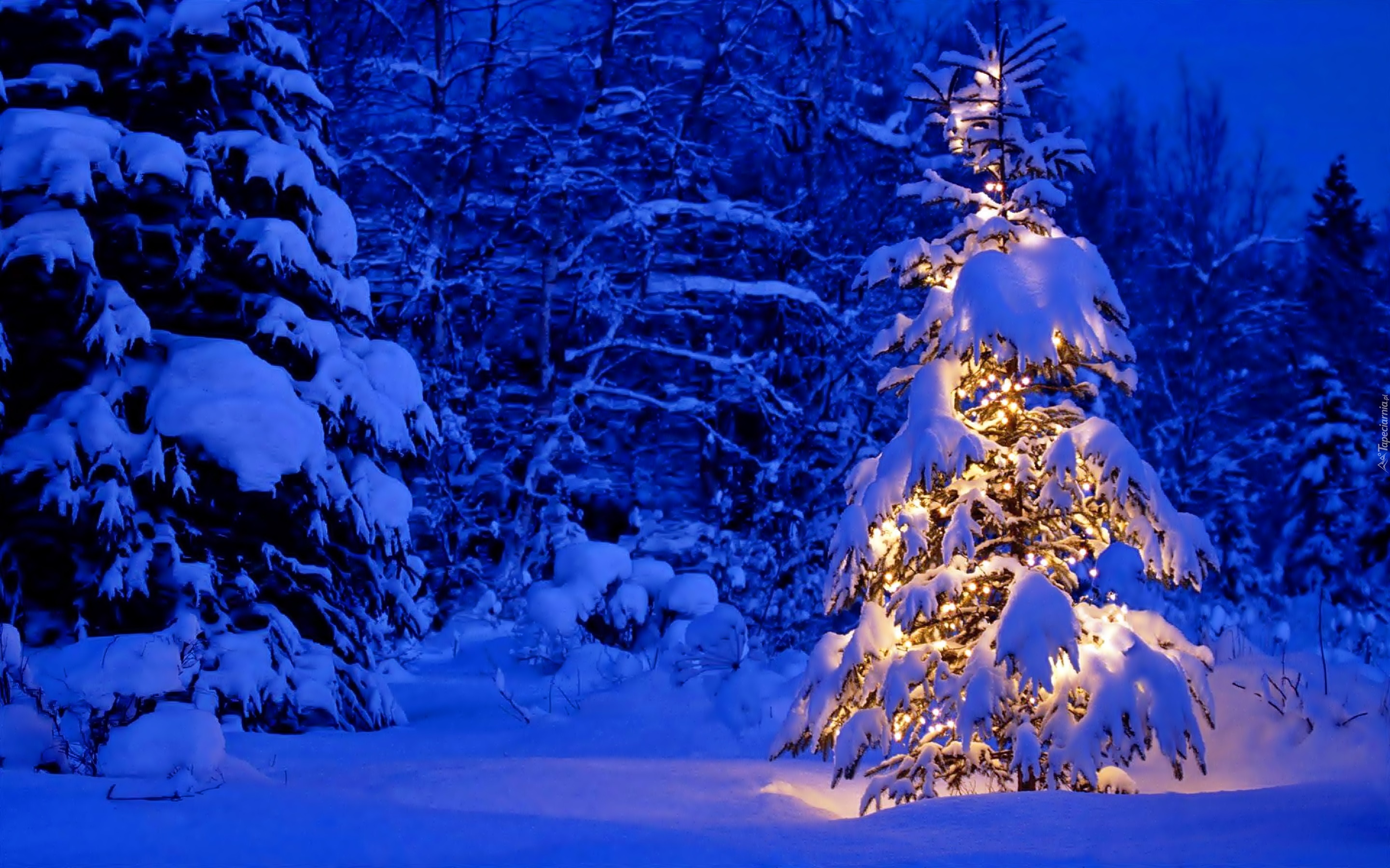 Edytor tapety: Zima, Las, Oświetlony, Świerk