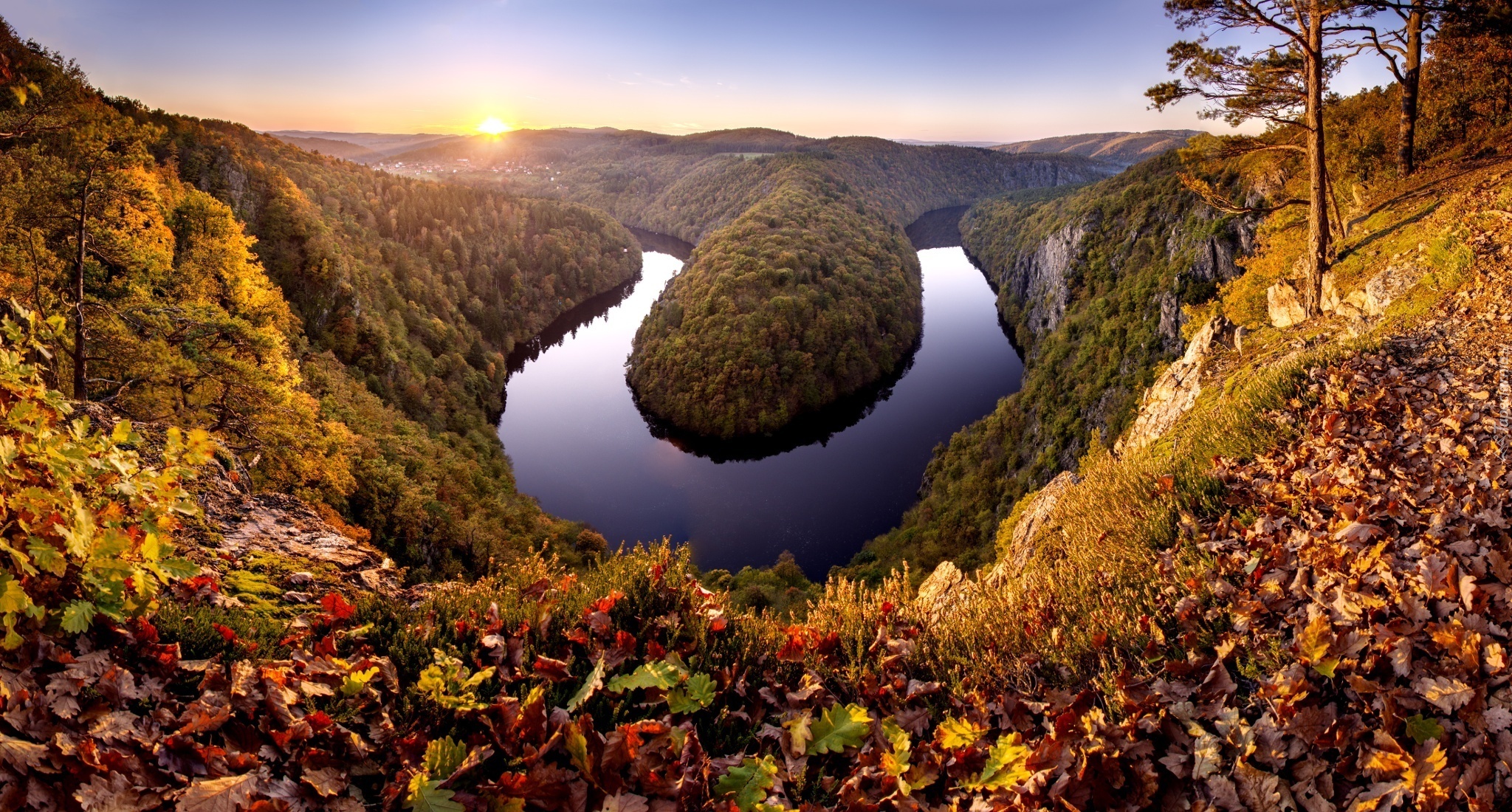 Edytor tapety: Lasy, Rzeka, Wschód słońca