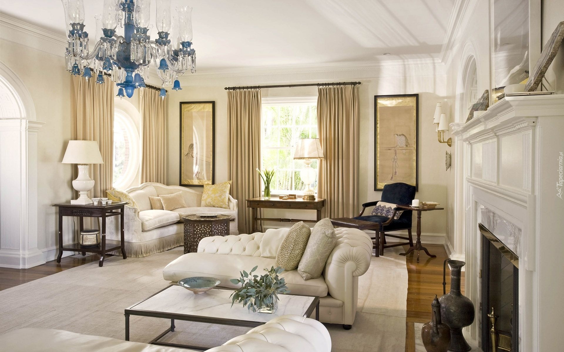 Edytor tapety: Pokój, Kominek, Szezlong