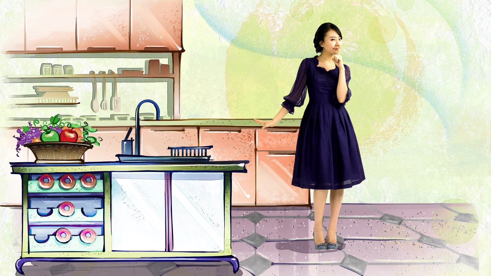 Edytor tapety: Kobieta, Kuchnia, Grafika 2D