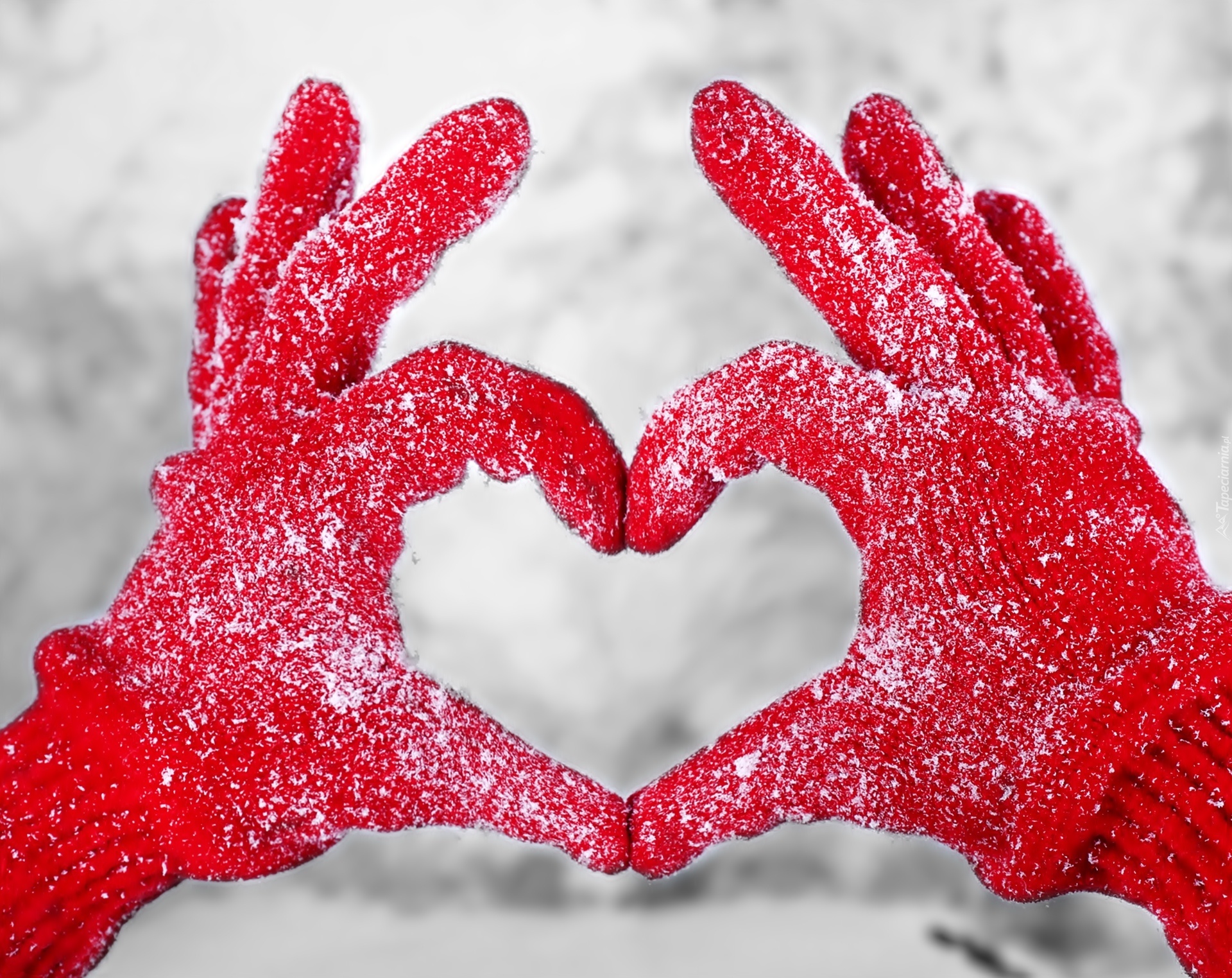 Edytor tapety: Rękawice, Kształt, Serca, Snieg