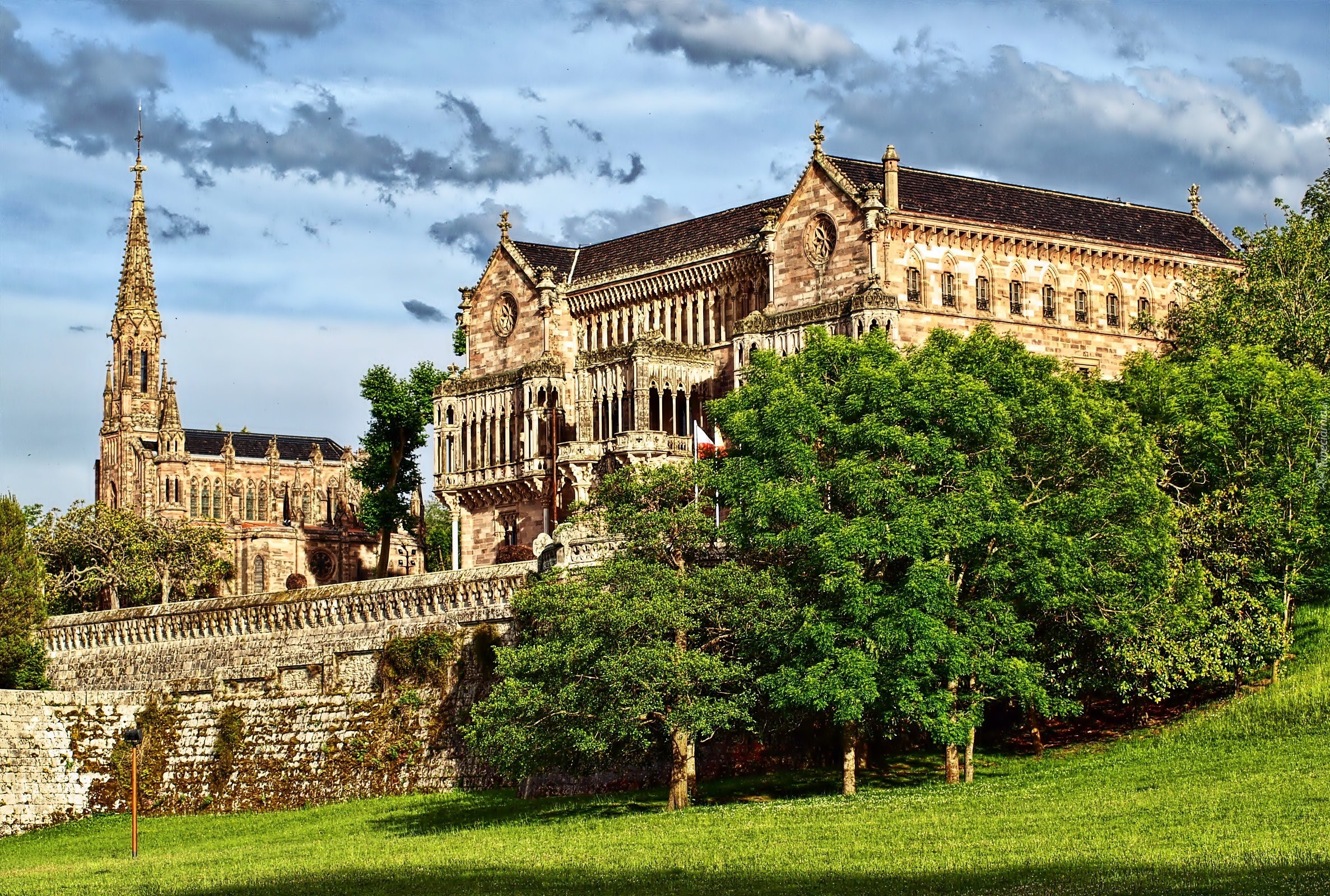 Edytor tapety: Pałac, Sobrellano, Kościół, Park, Comillas, Kantabria