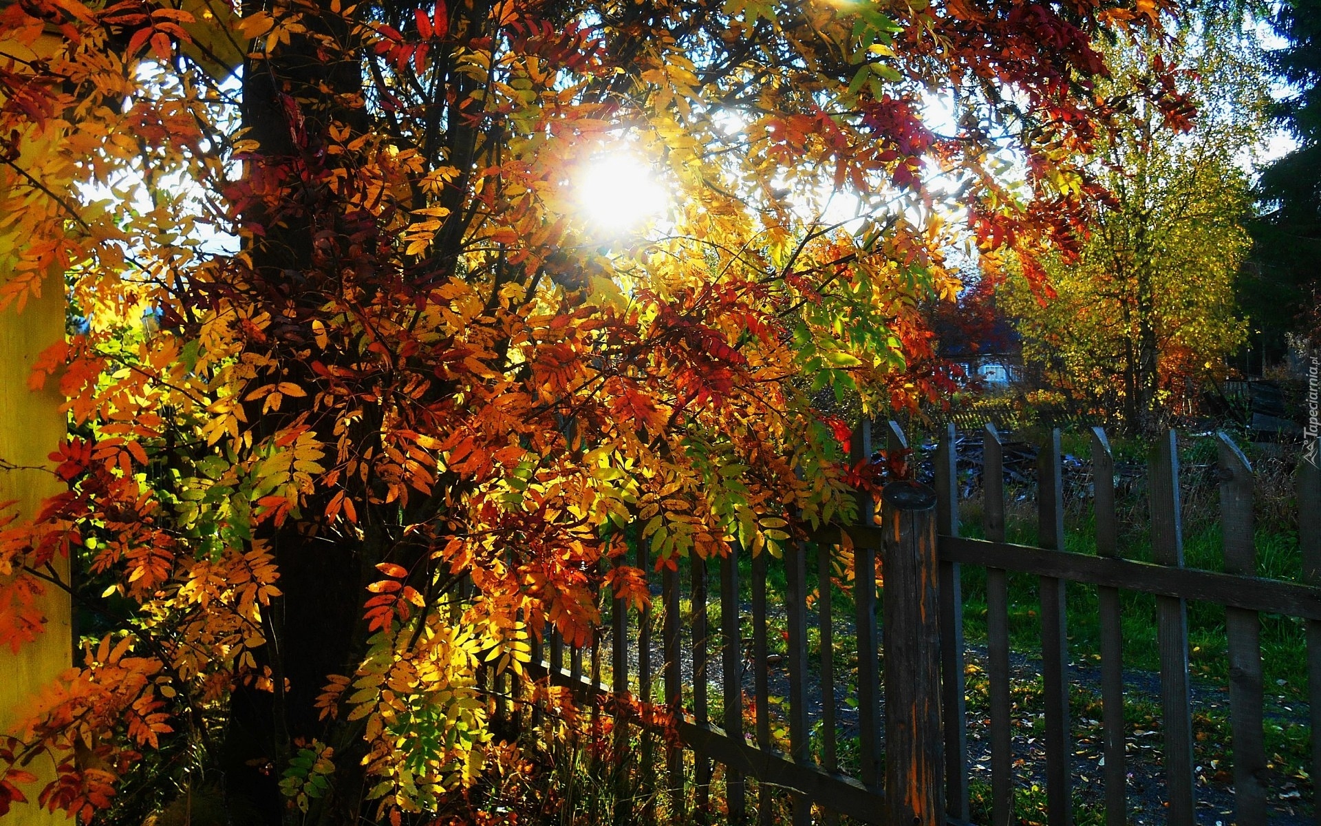 Edytor tapety: Jesień, Ogród, Drzewo, Słońce