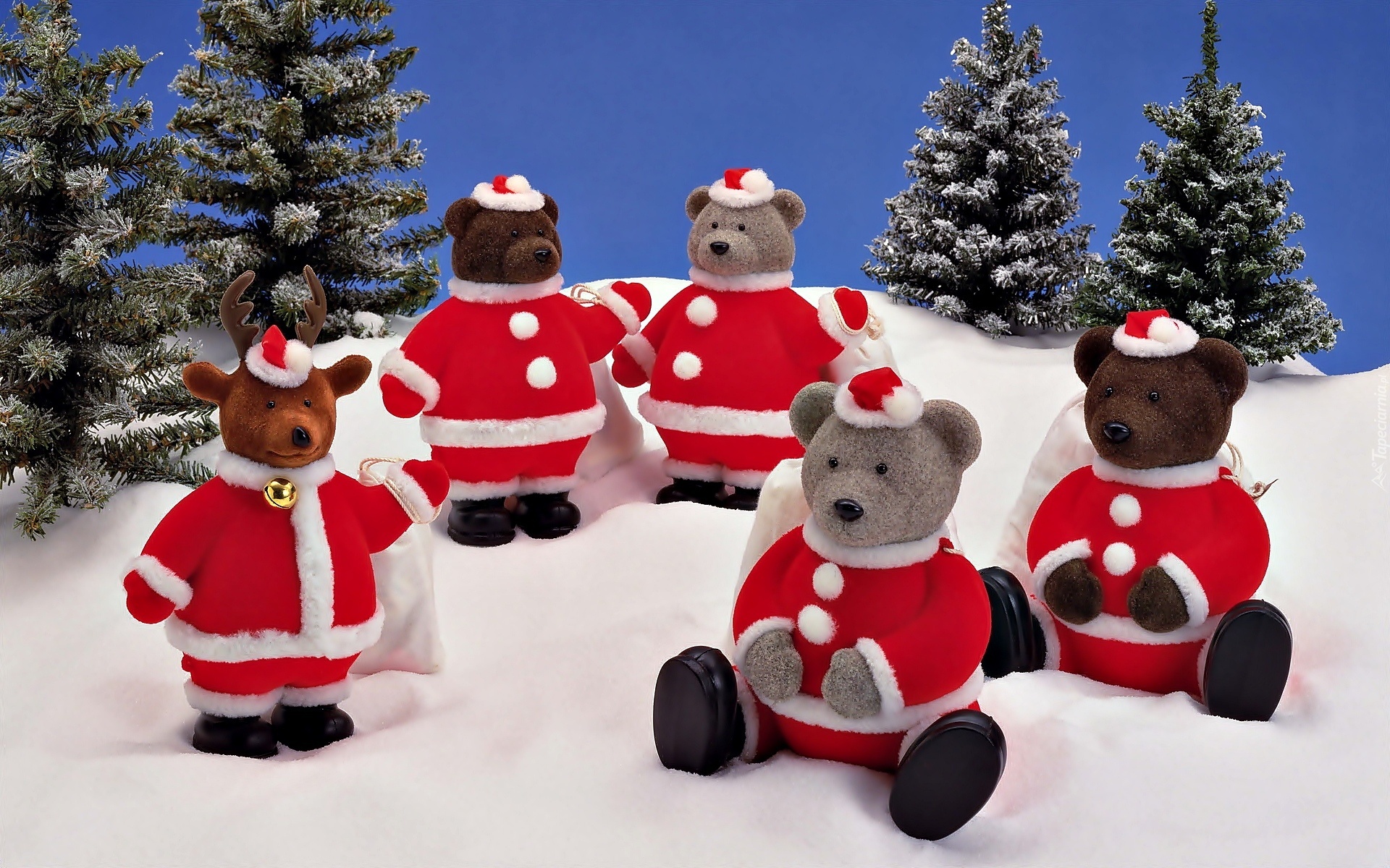 Edytor tapety: Misie, Mikołaje, Choinki, Śnieg