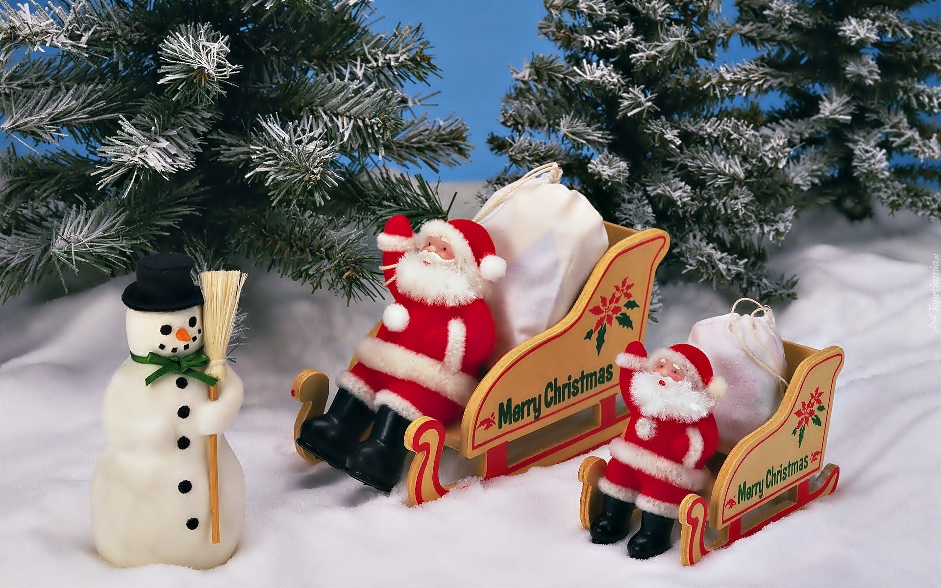 Edytor tapety: Choinki, Dekoracje, Bałwan, Mikołaje, Sanie, Śnieg