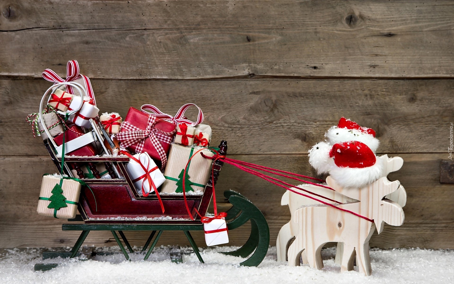 Edytor tapety: Dekoracja, Świąteczna, Paczki, Sanki, Renifery