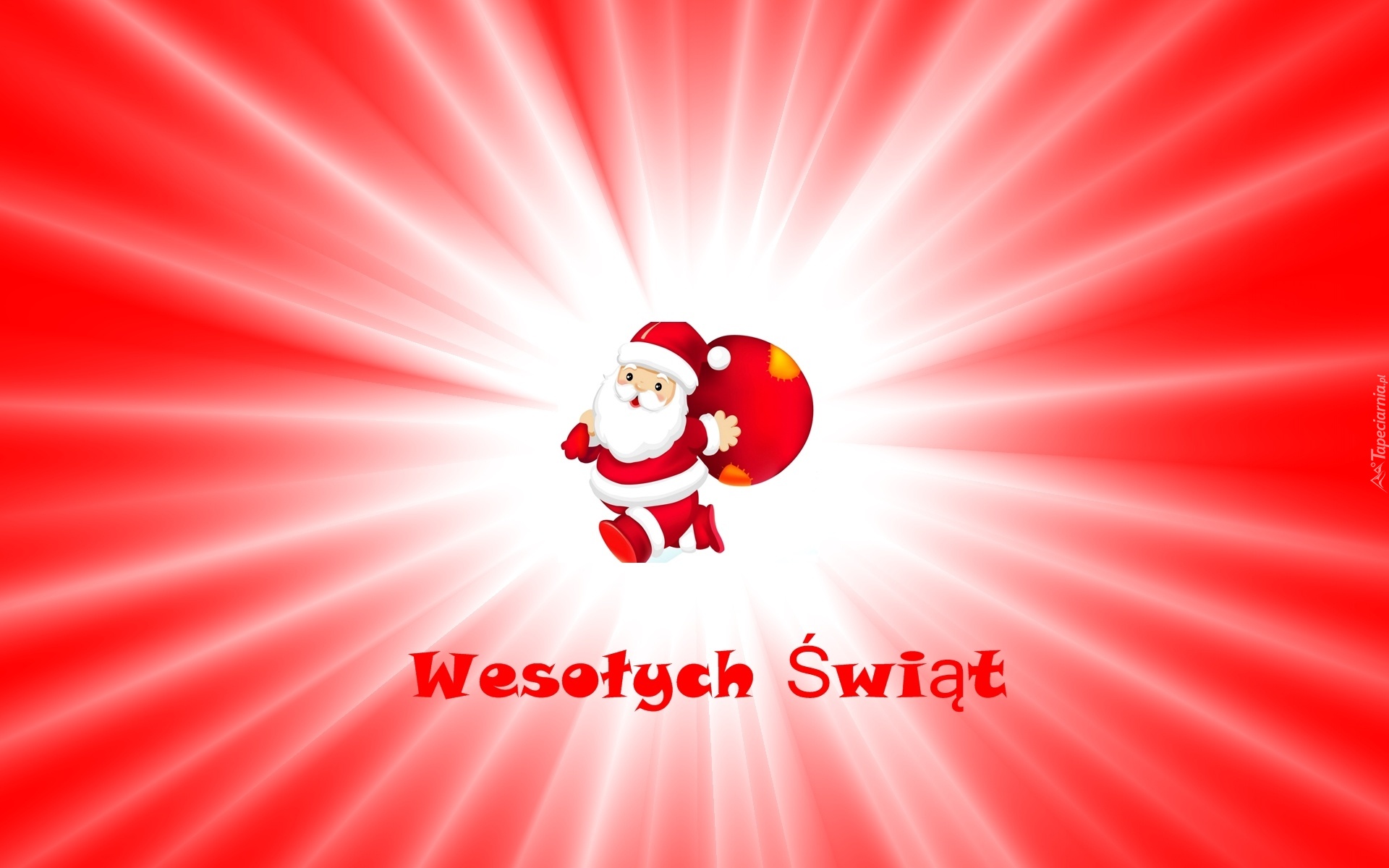 Edytor tapety: Mikołaj, Promienie, Napis, Wesołych Świąt