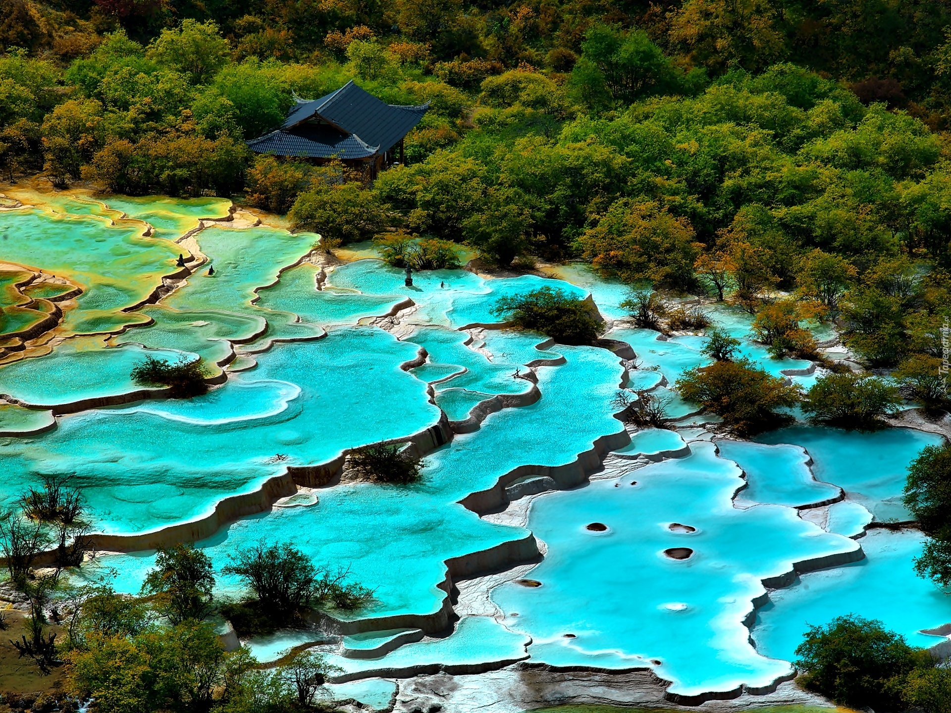 Edytor tapety: Chiny, Sadzawki, Huanglong, Kaskada