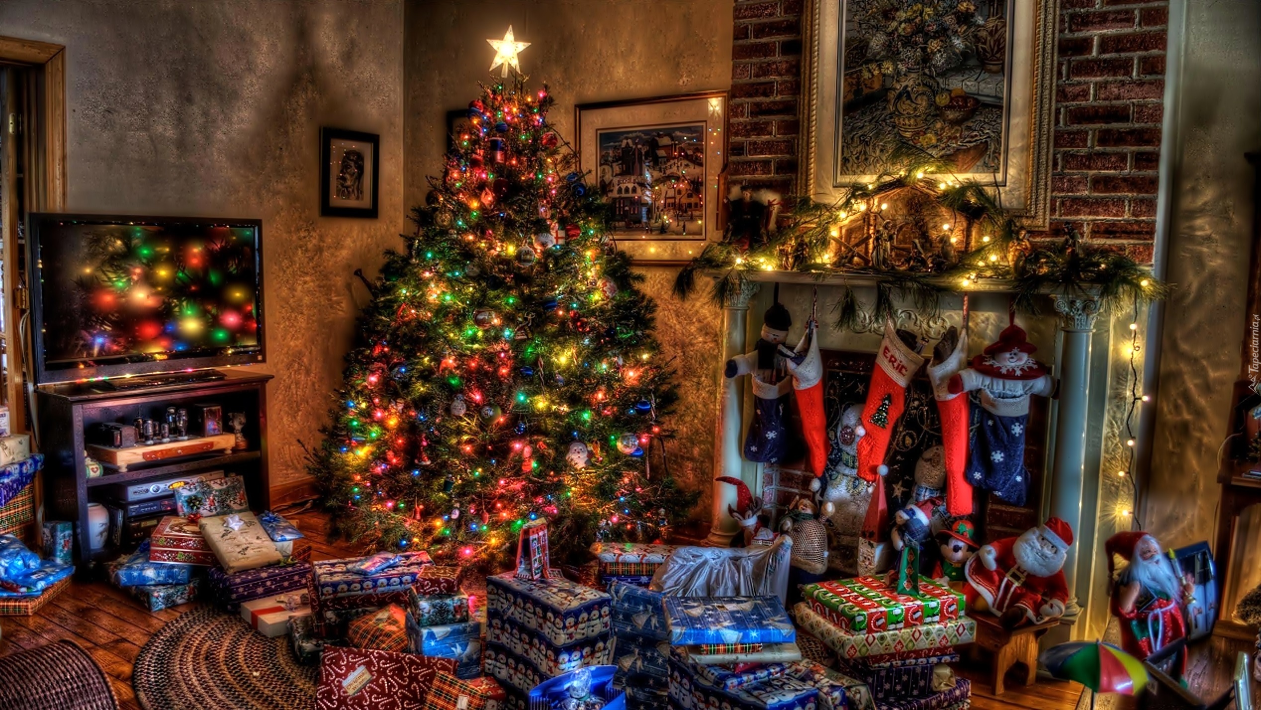 Edytor tapety: Boże Narodzenie, Salon, Choinka, Prezenty