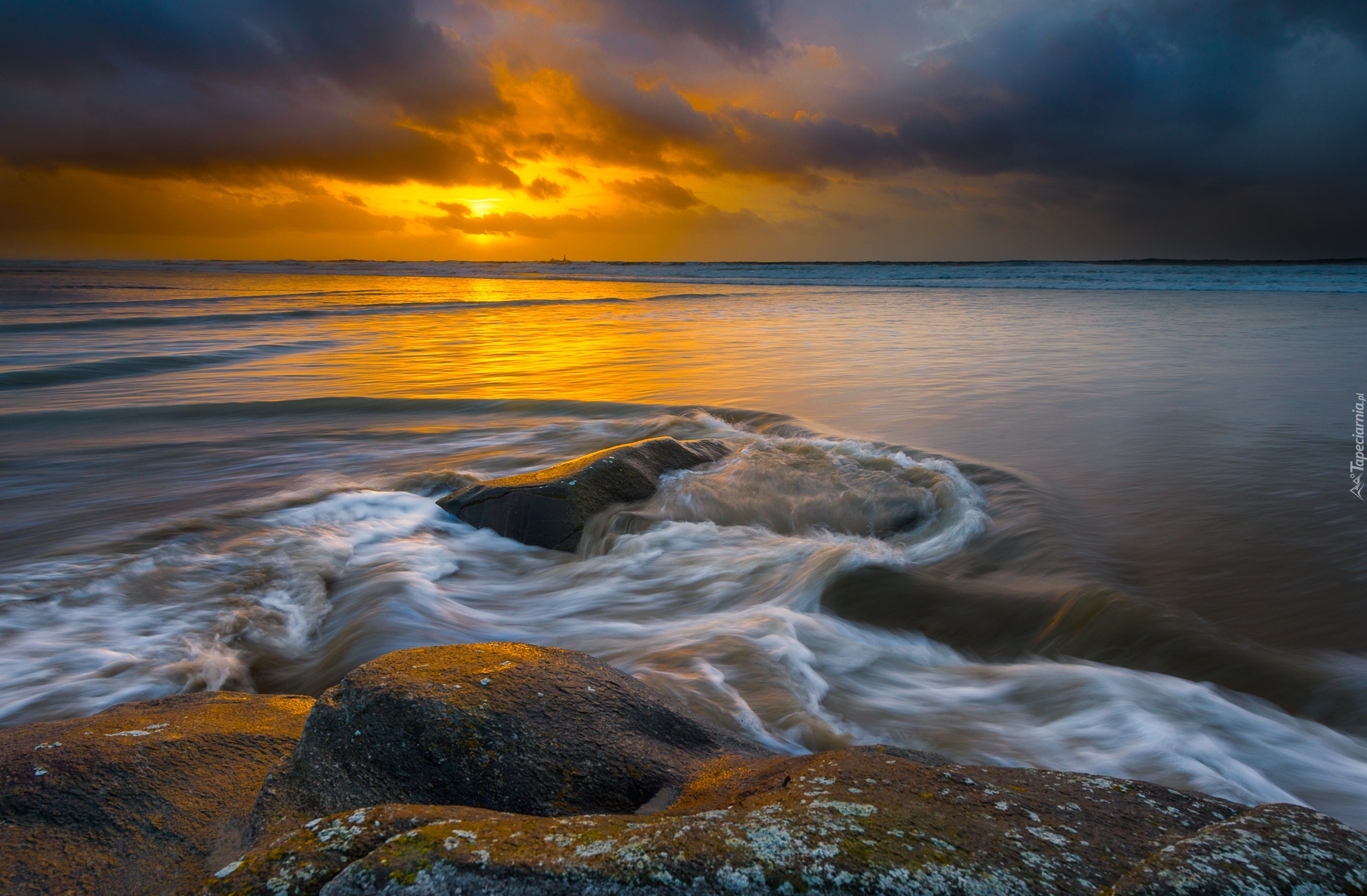 Edytor tapety: Morze, Skały, Zachód Słońca
