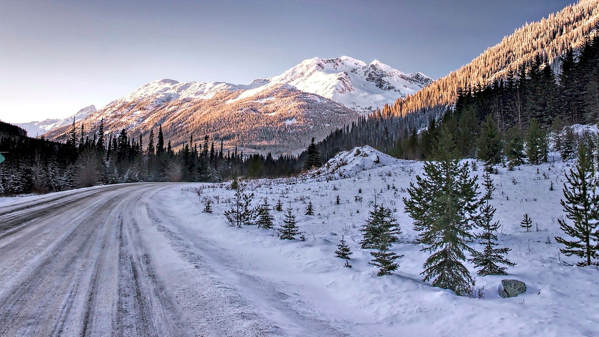 Edytor tapety: Zima, Śnieg, Droga, Góry