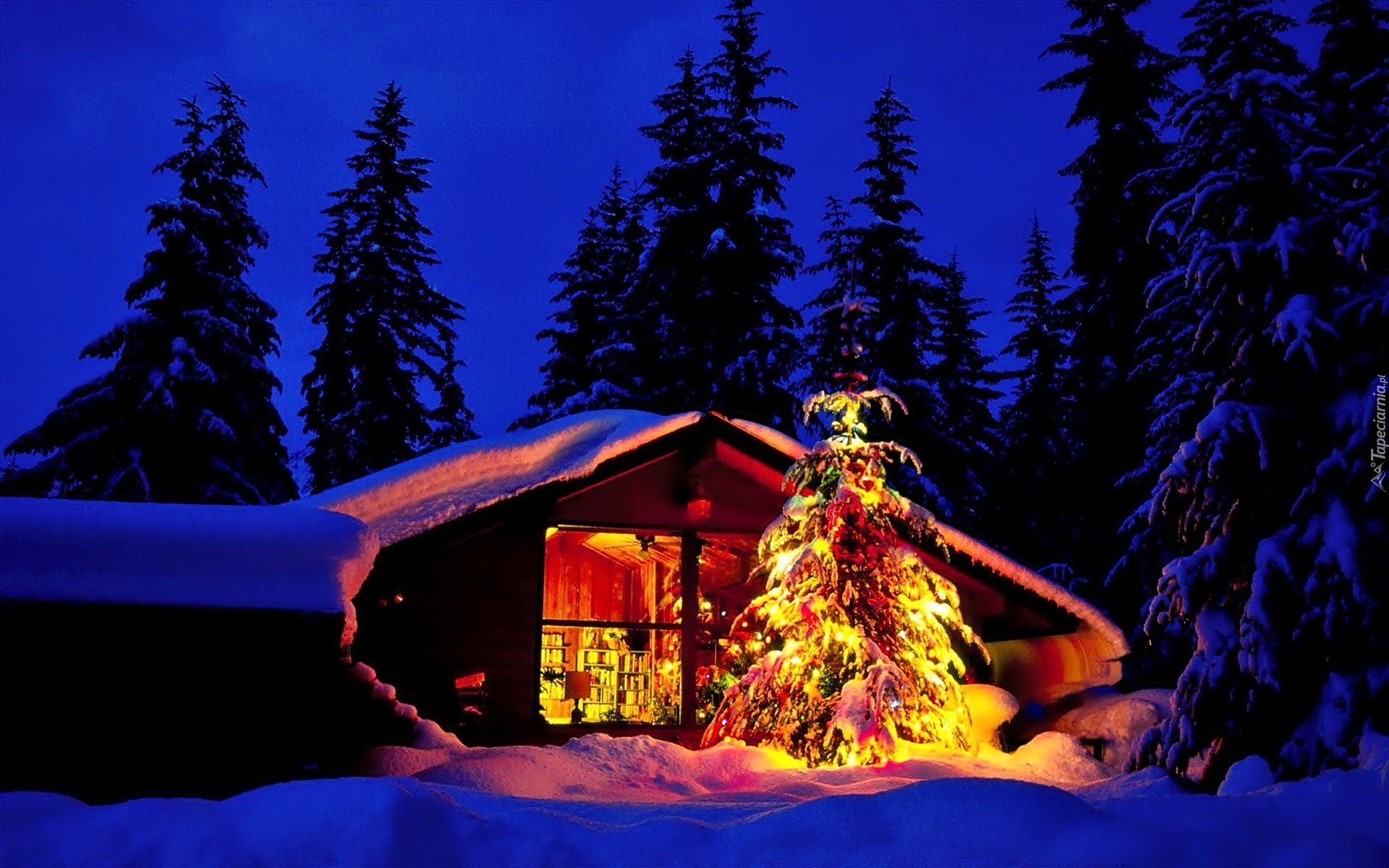 Edytor tapety: Boże Narodzenie, Dom, Noc, Choinka
