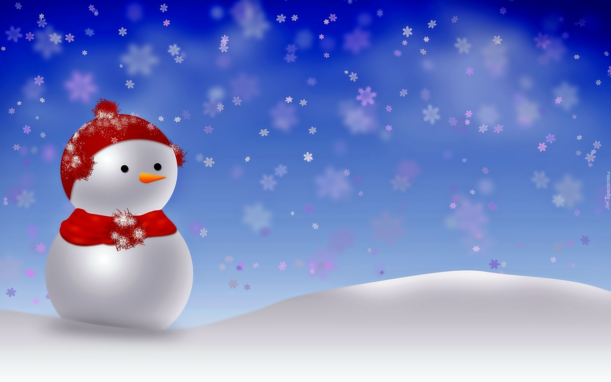 Edytor tapety: Bałwanek, Czerwona, Czapeczka, Zima, Zaspa