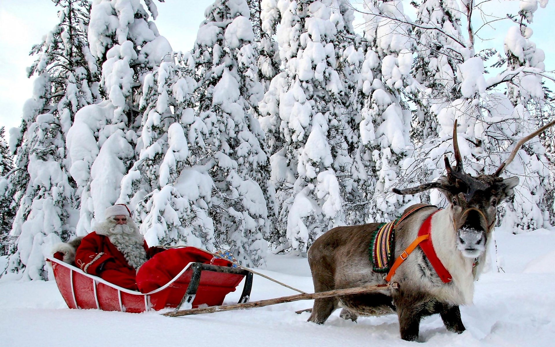 Edytor tapety: Zima, Las, Sanie, Mikołaj, Renifer