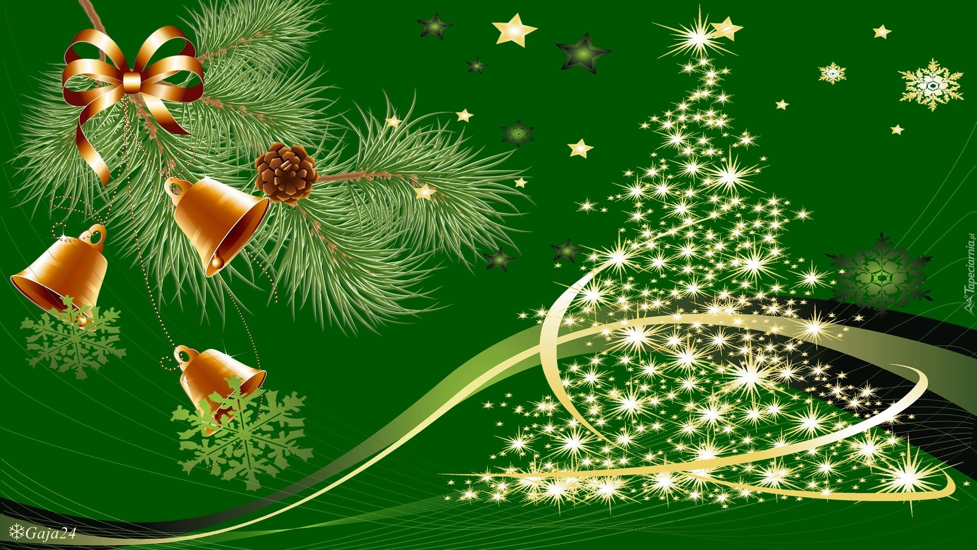 Edytor tapety: Choinka, Gałązka, Dzwonki, Święta