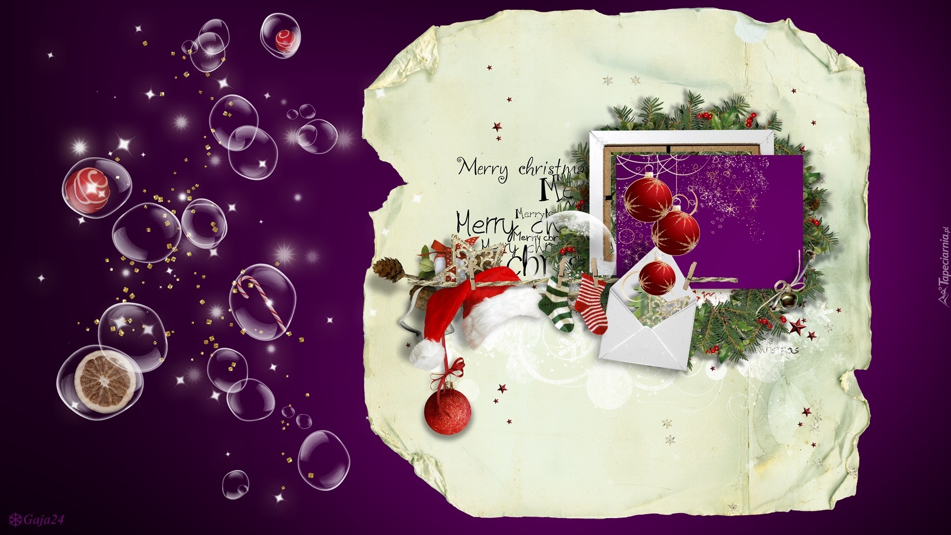 Edytor tapety: Bombki, Kartka, Świąteczna