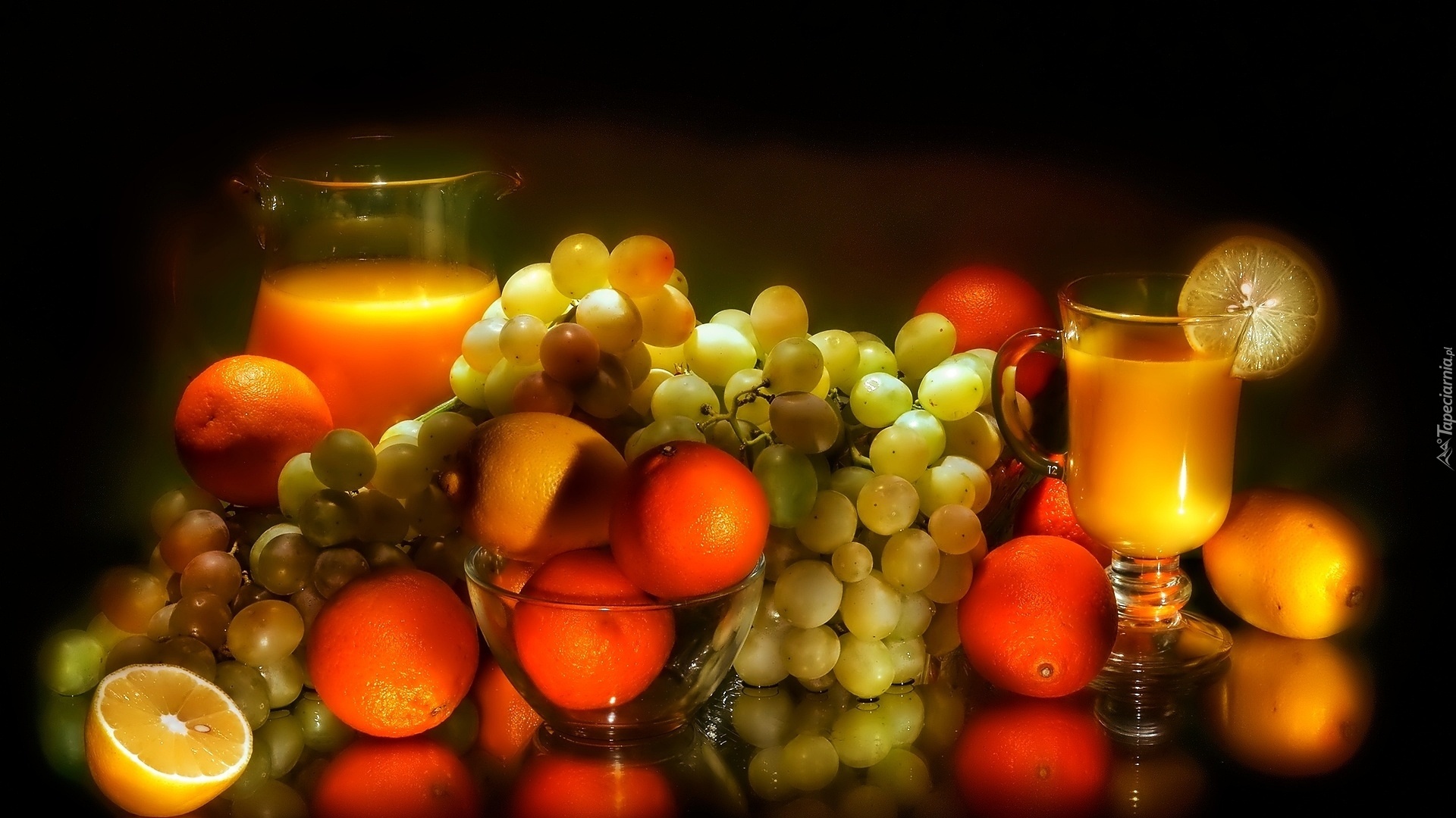 Edytor tapety: Pomarańcze, Winogrona, Sok
